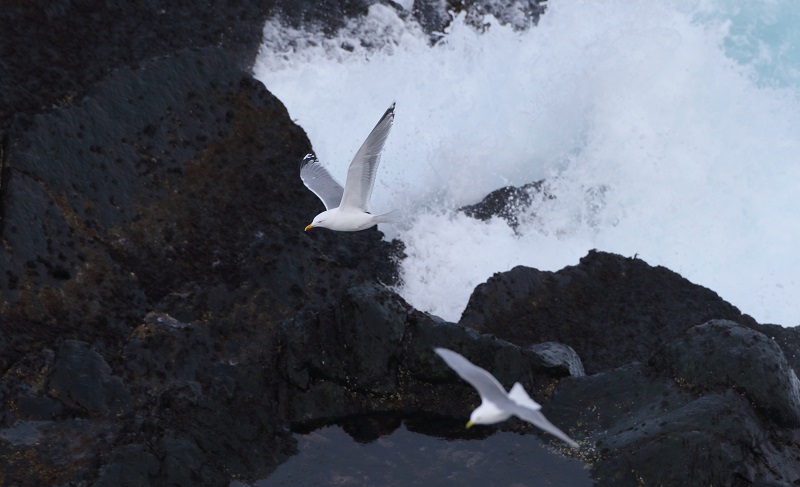 Ook heb ik mooie beelden kunnen maken van Zeekoeten, Alken en Kuifaalscholvers. Helaas kon ik geen Kortbekzeekoet tussen al deze duizenden Zeekoeten vinden, waar ik vooraf wel een beetje op gehoopt had. Een rondcirkelende Zeearend maakte dat gemis meer dan goed. Waarschijnlijk was het een 2de jaars exemplaar dat zijn lunch aan het zoeken was. Omdat we beperkt waren doordat we, volkomen terecht, alleen op het paadje mochten blijven en je daardoor na enige tijd een beetje dezelfde plaatjes aan het maken bent, ben ik me weer bezig gaan houden met het vastleggen van vliegende vogels. Ik had daarvoor speciaal voor dit moment een lens van een collega geleend (nog enorm bedankt daarvoor!). Zij heeft een 100-400mm lens waarmee je een wijdere kijkhoek hebt en daarmee vogels dus sneller kunt “vangen”. Ik moest er even inkomen, maar toen bleek al snel dat het werkte zoals ik hoopte en kreeg prachtige vliegbeelden.