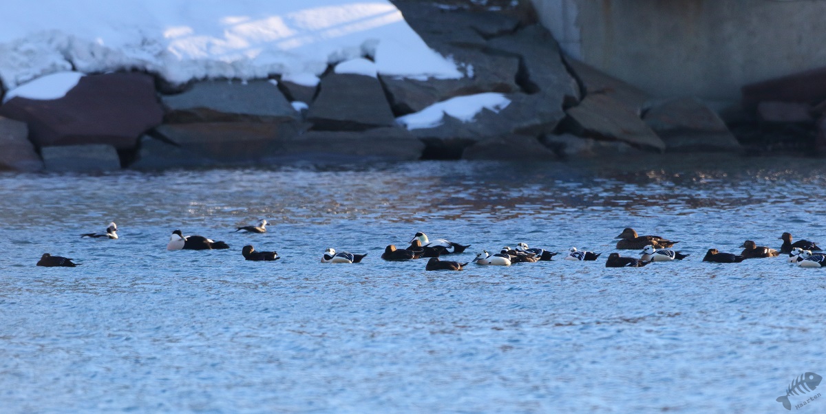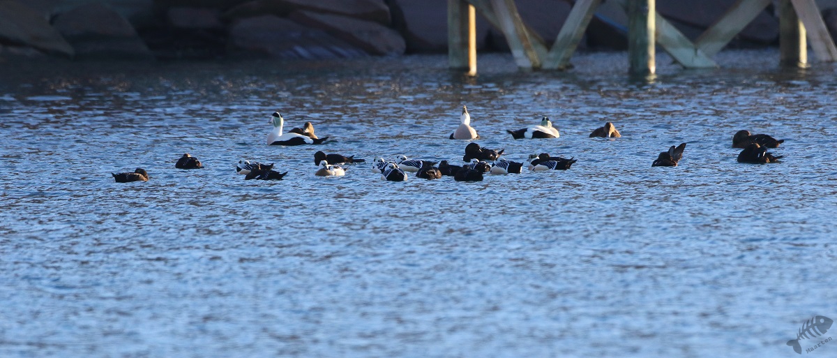 Omdat ik mij vergist had, won ik deze dag ineens een half uur. Ik ben er de hele tijd vanuit gegaan dat mijn vlucht om 11.30 uur zou vertrekken, maar dat bleek om 12 uur te zijn. Daardoor besloot ik dat ik best mijn geluk nog een keer kon beproeven door een kleine omweg te maken en te zien of de Koningseiders nog in Vadsø ouden zijn. Om 7 uur was ik ter plaatse en ben direct gaan zoeken. De omstandigheden waren weer heel gunstig, dus ze mochten komen… Helaas bleef het bij de soorten die ik hier al eerder had gevonden en ik heb daar nog even wat afscheidsplaatjes van gemaakt. Toen ik weer bij de auto kwam, stond daar de gids en toevallig ook en hij vertelde waar hij ze gezien had, tenminste: ik denk dat hij dat uitlegde. Ik begreep het niet helemaal en als ik het goed begrepen had, zaten ze een stukje naar het westen. Ik heb daarop kort getwijfeld, maar bedacht dat het ook een keer mooi is geweest. Ik ben in de auto gestapt en heb de reis van een kleine 3 uur weer gemaakt. Het weer was weer prachtig en onderweg met lekkere muziek erbij, vloog de reis voorbij.