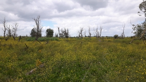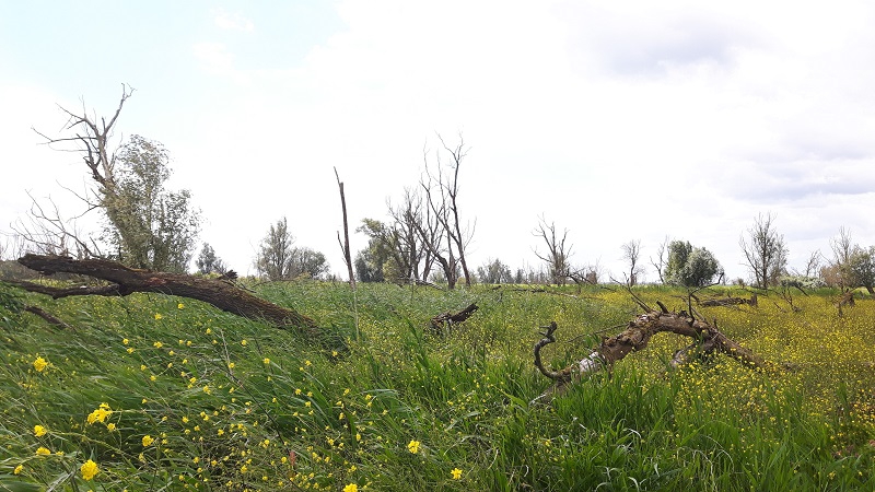 De wind leek nog meer toegenomen en dat maakte het bezoek aan laatste gebied er niet aangenamer op. Om een lang verhaal kort te maken: tot aan Wigbels Eiland zag en hoorde ik niets en in de hut heb ik alleen nog wat tijd besteed aan een nestje Boerenzwaluwen. Ik heb verschillende foto’s gemaakt en wat filmpjes en ben toen weer teruggegaan. Het Wilgenbos, of wat er nog van over is, was wel mooi, gehuld in gele bloemen, maar de wind begon ik zat te worden en ik ben daarom weer naar de auto gelopen en naar huis gegaan.