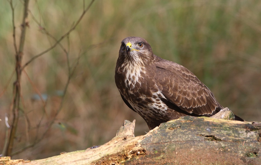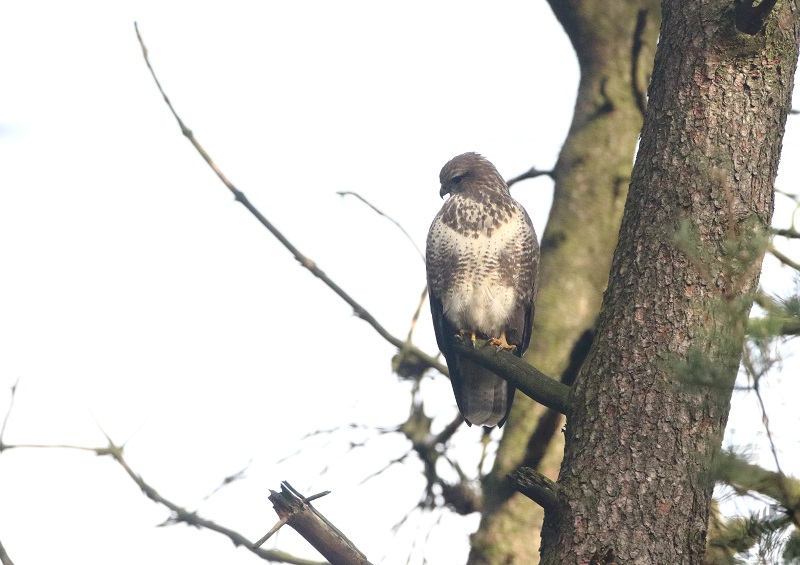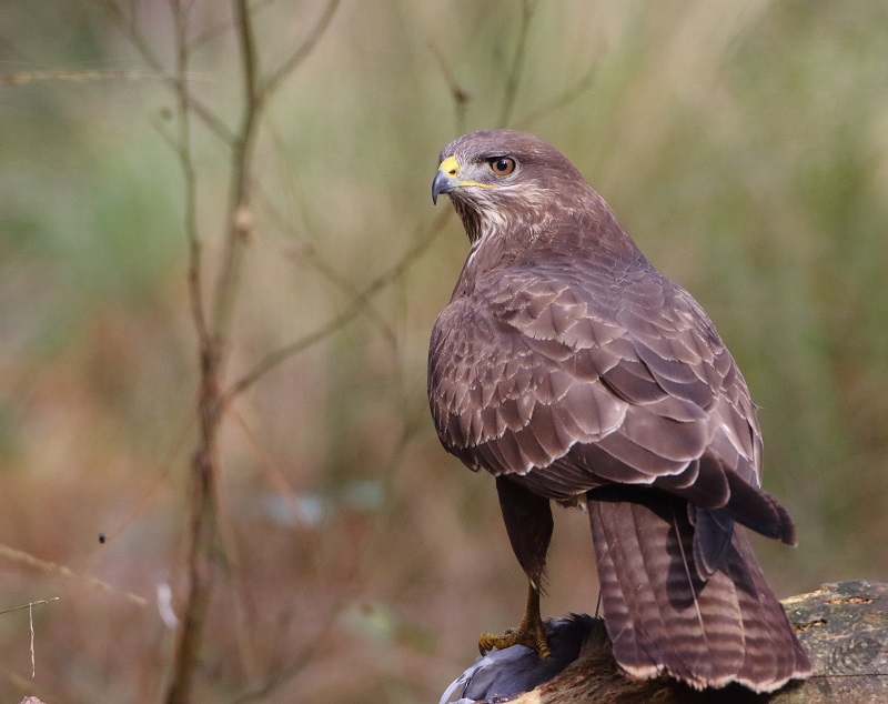 Net toen ik bedacht had maar weer eens te gaan, verscheen de Buizerd weer ten tonele. Het licht was nu veel zachter waardoor hij nog mooier uitkwam dan tijdens zijn eerste bezoek. Na een klein kwartier was de duif wel zo’n beetje op en vertrok hij weer. En na hem ik ook.