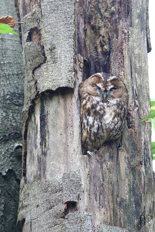 Gelukkig hoefde ik maar kort te zoeken. Mijn vogelvriend van de vorige dag had ook nog als commentaar bij de foto gezet wáár hij moest zitten en al snel vond ik de boom met de Uil. Hij zat er! Wat een prachtig dier en wat een heerlijk moment! Natuurlijk had ik de Bosuil al best vaak gehoord, maar ik had hem nog nooit gezien en hier zat hij stilletjes te doezelen voor mijn neus.