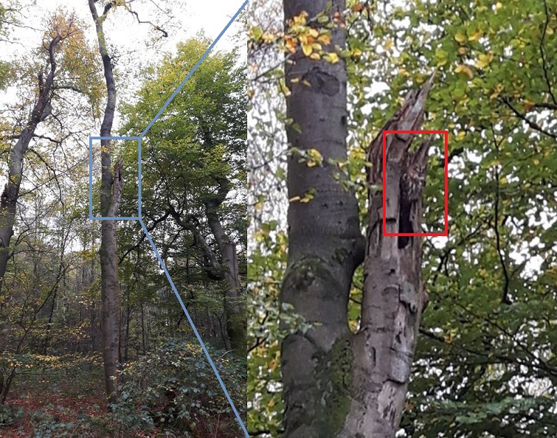 Na een korte twijfel en nog even het weerbericht bekeken te hebben, ben ik de volgende dag inderdaad op zoek naar de Bosuil gegaan. De avond ervoor had ik de coördinaten die ik gekregen had even ingevoerd en bekeken waar het zou moeten zijn. Ik heb meteen maar op de kaart een plek voor de auto gezocht zodat ik aan dit soort zaken niet teveel tijd kwijt zou zijn. Ook had ik een foto gemaakt van de route die ik zou moeten lopen voor het geval ik het toch niet zou kunnen vinden. Al was dat haast onmogelijk: met de precieze coördinaten én een foto van de boom waarin de Bosuil te vinden zou moeten zijn, kon het gewoon niet mis gaan…