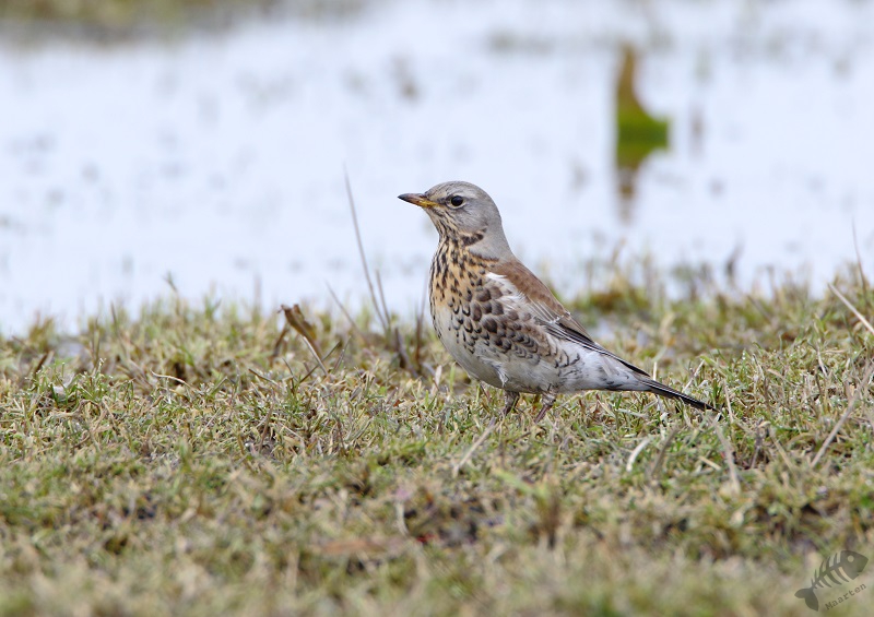 Totdat ik opeens een kleine, Lijsterachtige vogel in de oostelijke weiden zag zitten: natuurlijk, een Kramsvogel!. De eerste die ik ooit fotografeerde zat ook hier in de Polder, maar ik heb ze daarna lang niet meer gezien. Deze zat eigenlijk wat ver, maar ik heb toch wat foto’s gemaakt. En als je dan éénmaal begonnen bent, blijken er gelukkig veel meer te zitten en op een gunstiger afstand! Op nog 2 plekken langs de Arlersteeg kreeg ik de gelegenheid deze mooie Lijster te fotograferen en daarna ben ik dan toch écht doorgereden naar de Plassen.