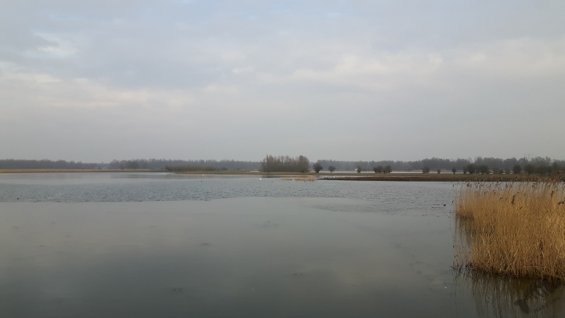 Heel veel tijd had ik niet, dus ben eerst naar de Oeverloper en Poelruiter in het Oostvaardersveld gegaan. Alleen bij de laatste had ik nog even een korte aardige ontmoeting met een Sperwer, maar zij vloog weg en bleek onze wederzijdse waardering toch meer éénrichtingsverkeer te zijn. Op het water voor de hut lagen enkele Tafeleendjes te slapen, maar verder was het heel rustig. Dus door naar de volgende hut, de Grauwe Gans, waar ik weer hoopte op Pijlstaarten. Voor deze hut was het nog rustiger, alleen langs de 2 paden ernaartoe en vanaf zag ik nog een IJsvogel en hoorde ik verschillende Waterrallen (die ik, uiteraard, niet te zien kreeg). Toen ook bij de Grote Zilverreiger ik de enige levende ziel leek, vond ik het wel weer mooi en ben naar huis gegaan.