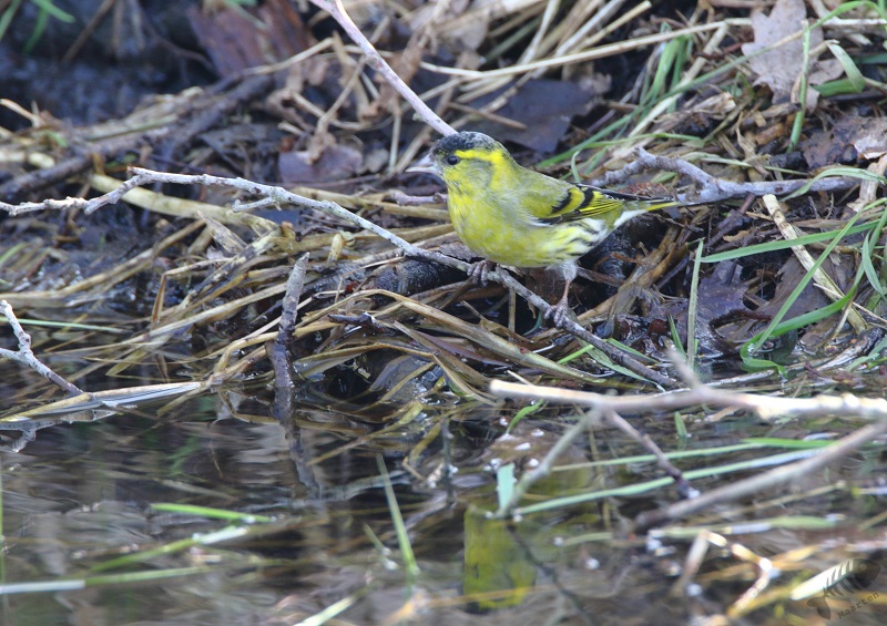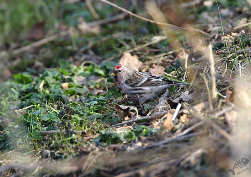 De zondag dat ik eindelijk kon gaan zoeken was het al iets minder koud, net als de zaterdag. Ik hoopte dat het voor de vogels nog niet voldoende opgeklaard was en dat ze nog heel even in het beekje zouden blijven. Met TomTom had ik de plek vlot gevonden en er bleken al 2 andere vogelaars aanwezig te zijn. Hierdoor moest ik een minder gunstige plek nemen, met minimaal uitzicht over het beekje. Toen ik eenmaal stond, zag ik toch al vrij snel een Snip-achtige vogel! Het zou toch niet dat al meteen… Nee, inderdaad niet. Het bleek een Watersnip te zijn. Verder zat er aan het water niets. Wel hoorde ik overal Sijsjes en Barmsijsjes.
