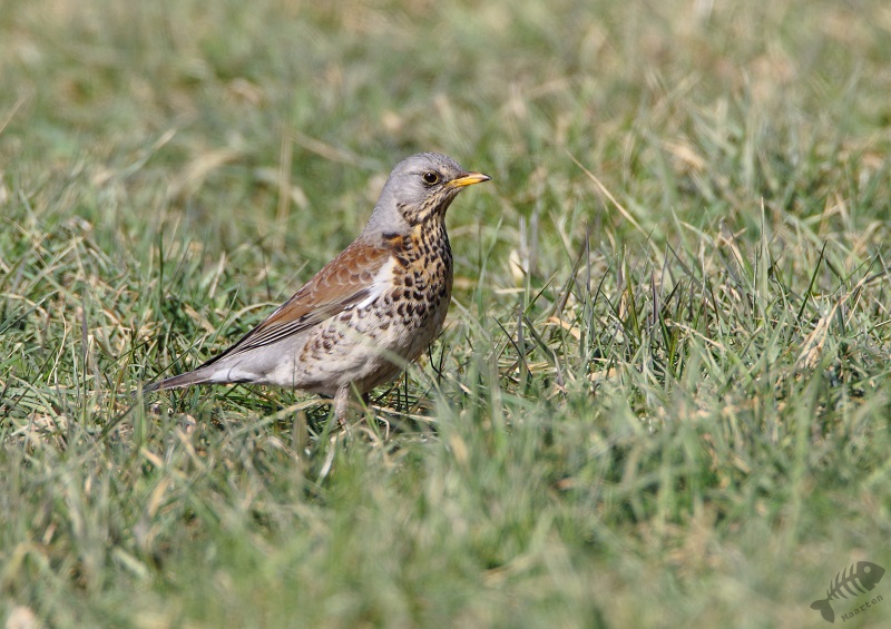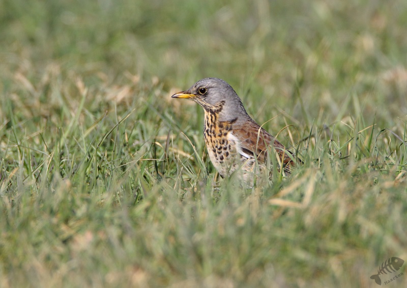 We hebben, net iets té, lang staan praten en kregen weinig meer te zien. Alleen aan het einde verscheen er ineens een hele groep Kramsvogels die al foeragerend regelmatig dichterbij kwamen. Daar heb ik nog een reeks aardige plaatjes van gemaakt en daarna ben ik weer gegaan. De andere vogelaar had me nog gewezen op een ander gebied in de buurt van de Maas, maar toen ik daar kwam leek het ook hier te druk en heb ik de pont naar Cuijk gepakt om daar even op bezoek te gaan.