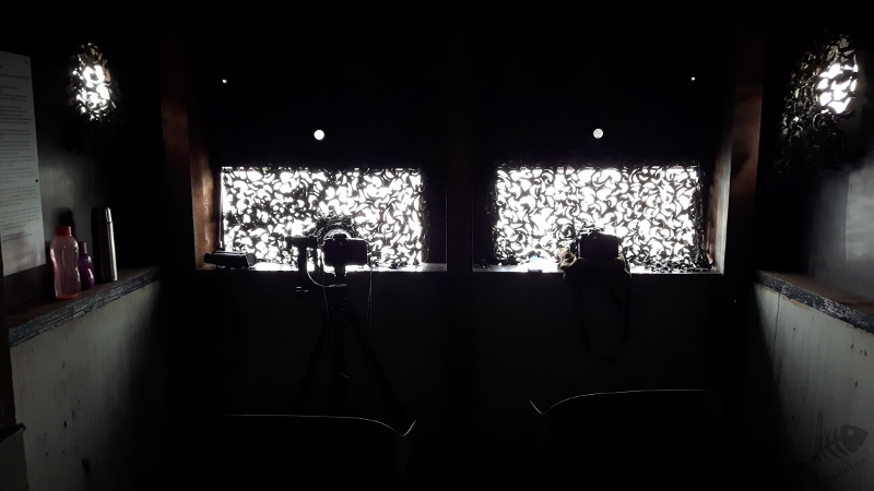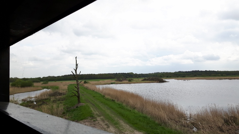 Zaterdagochtend, 28 april, was het eindelijk zo ver. Al vroeg zat ik in de auto vanuit ons vakantie-adres in Zuidlaarderveen voor de rit van een kleine 40 minuten naar Diependal. Ik had eerder al de instructies via de mail gekregen en wist dat ik vanaf de parkeerplaats nog een paar 100 meter moest lopen. Wat me wel verbaasde was dat ik bij de hut nog zo’n 300 meter door een soort tunnel moest, waarin aan het einde de ingang naar beide hutten was: voor mij een deur door en trapje af, en voor de openbare hut een trap op. De hut was een betonnen bouwwerk waar je met 2 personen ruim naast elkaar zou kunnen zitten en met een prachtig laag uitzicht over een aantal plassen. Ik had me snel geïnstalleerd: laat de Roodhalsfuten maar komen!