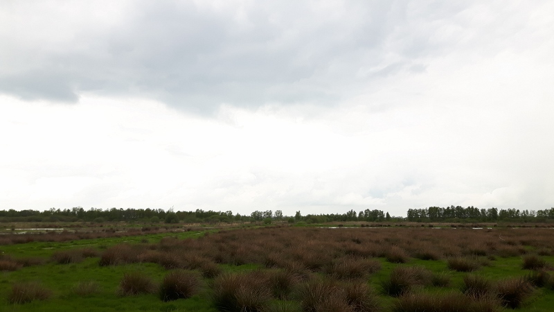 De rit naar Fochteloo was mooi en voerde door het prachtige Drentse Veenlandschap. Hij liep langs lange kanalen en echte veendorpen en vrij onverwacht reed ik ineens op de weg welke het Fochteloërveen doorsnijdt. Het weer leek wat minder te worden en daarom had ik van te voren al 2 plekken bedacht waar ik zeker even wilde gaan kijken. Dit waren de vogelkijkhut en het gebied achter het bezoekerscentrum.