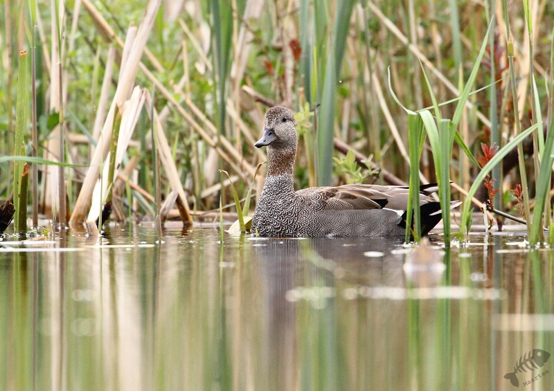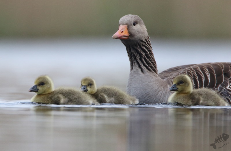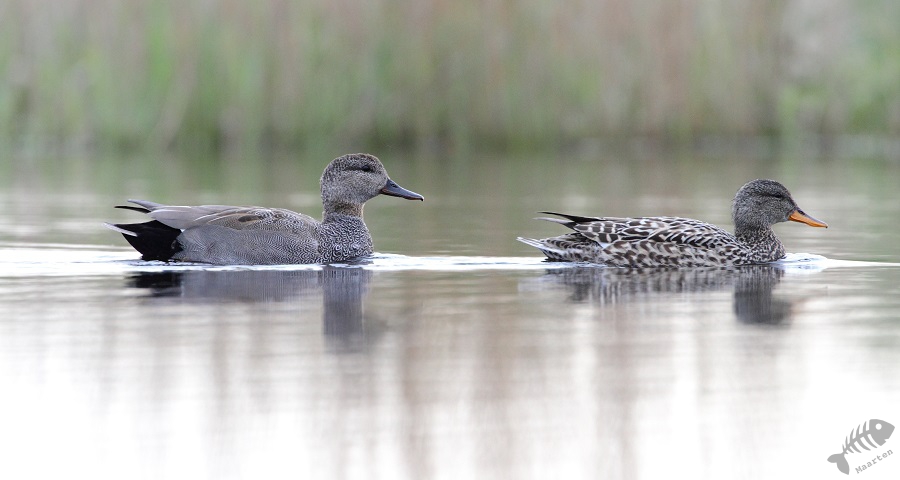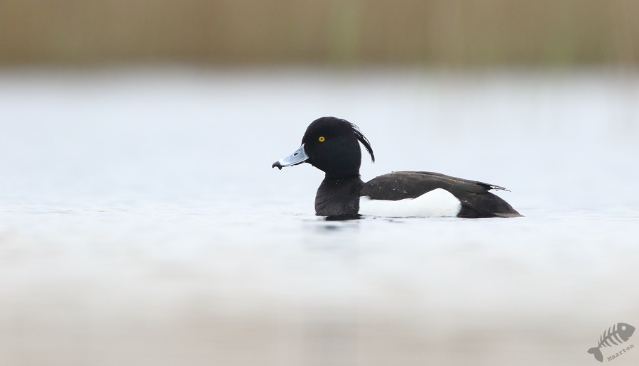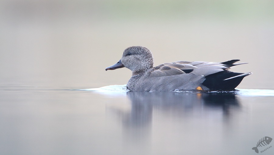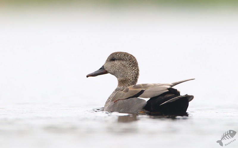 Het licht was in het begin erg mooi, zacht, waarin een Knobbelzwaan en Krakeend zich mooi lieten vastleggen. Al heel snel verscheen één van mijn wenssoorten ten tonele: een Zomertaling liet zich ook prachtig, zij het van wat grotere afstand, fotograferen, waarmee ik er dus eentje van mijn lijst kon doorstrepen. Er zwommen en liepen ook verschillende families Grauwe Ganzen rond en ik kon het niet laten een paar kuikens met hun moeder vast te leggen. Wat zijn ze dan nog leuk om te zien! Zeker als ze geen geluid maken… De Zomer(taling) maakte langzaam plaats voor de Winter(taling) en ook deze kwam op de gevoelige chip te staan en een Dodaarsje liet nog even goed zien waarom hij eigenlijk zo heet en daarna werd het wat rustiger. Gelukkig verscheen er bij tijd en wijle nog wel een mooie Slobeend of Tafeleend, maar druk werd het nooit en de Roodhalsfuten blonken uit in afwezigheid. Gelukkig verscheen de kleinste neef van de Futen familie nog wel even heel mooi dichtbij, zodat deze familie alsnog goed vertegenwoordigd werd. Ook de Zomertaling kwam zo af en toe terug, nooit héél dichtbij, maar het leverde wel mooie beelden op van één van de mooiste Eenden van Nederland.