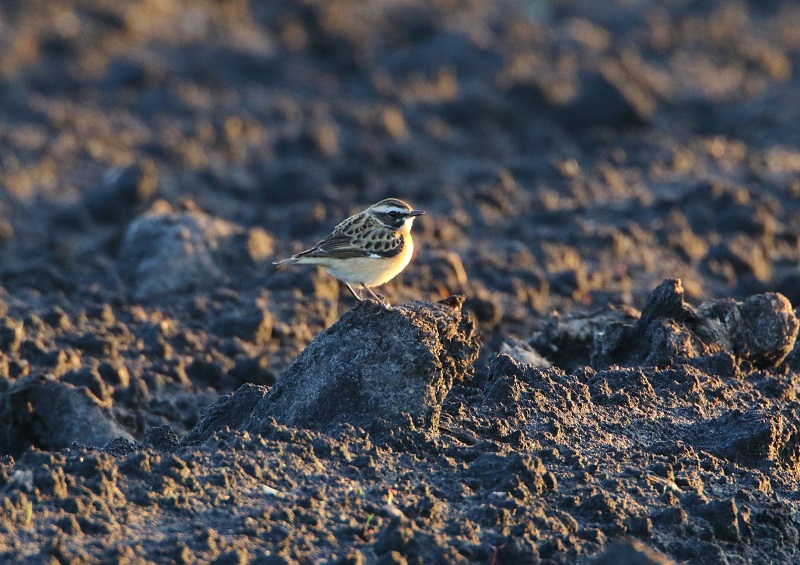 30 April ging het al meteen goed verder. Een Gele Kwikstaart in het laatste zonlicht op een draad is altijd leuk, zeker als niet veel verderop een Roodborsttapuit er ook eens goed voor gaat zitten. De Roeken zaten er ook weer, maar nog schichtiger dan 2 avonden daarvoor, dus lukte het niet meer om nog heel veel vast te leggen op weg naar Zuidlaren. Ik ben daar dan ook weer omgedraaid en langzaam weer naar ons verblijf gereden. Op een akker zag ik enkele vogels foerageren, waarvan ik dacht dat het Pleviertjes waren. Ik ben heel voorzichtig zo dichtbij mogelijk gereden en heb ze eens goed bekeken. Hoe veel meer had ik mij kunnen vergissen?! Het bleken geen Plevieren te zijn, maar Tapuiten. Helaas was het licht dus, op z’n zachts gezegd lastig, en bleven de vogels op afstand, maar ik vind het altijd bijzonder deze prachtige, helaas steeds zeldzamer wordende, dieren te zien. Na enkele foto’s van één van de vogels, richtte ik mijn aandacht (en lens) op een een ander dier. En toen moest ik zelfs even slikken…: het bleek geen Plevier te zijn, zelfs geen Tapuit, maar een Paapje! Ook werden van deze schitterende vogel de foto’s maar matig, maar wat een feest om 2 van de Tapuiten (en daarmee 2 van mijn favorieten, samen met 2435 andere vogels) te mogen vastleggen! Ik sloot mijn rondje zoals ik hem begonnen was, met een Gele Kwikstaart, en ben dus weer naar de “Oude Aardappelschuur” gereden. Wat een heerlijke avond en er zouden er nog 2 volgen…