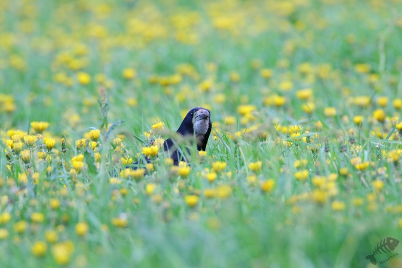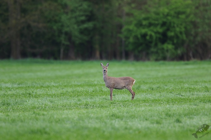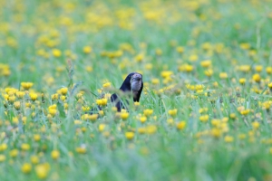 Direct de eerste avond heb ik een verkenningsrondje gemaakt. Al vrij snel zag ik een paar Reeën ver achter in een weide staan en was de toon gezet: dit is een leuk gebied! Een grote groep Zwanen zat niet ver van deze Reeën, maar deze leken niet op hun gemak toen ik voorbij reed, dus ben ik snel doorgegaan. Linksaf richting Zuidlaren. Langs deze weg zag ik een grote groep Roeken. Niet een alledaagse verschijning, dus zeker leuk. Ook zij hadden niet heel veel zin te zitten wachten, dus werd een soort van verstoppertjes plaatje tussen de bloemen. Andere soorten lukte helemaal niet meer en ik ben weer naar de boerderij gereden. Dit ging ik vaker proberen te doen, zo’n rondje kan heel wat leuks opleveren.
