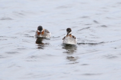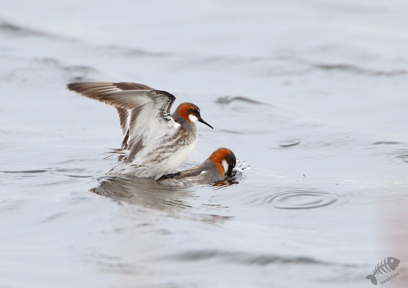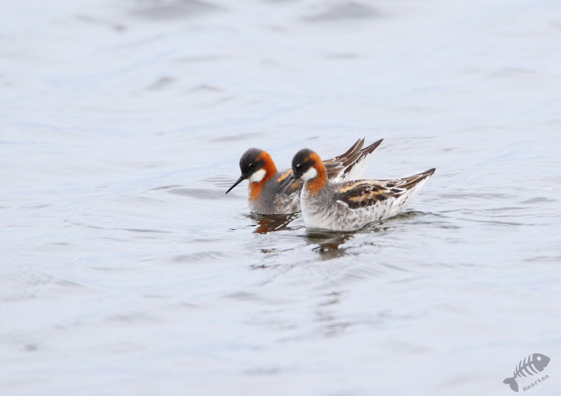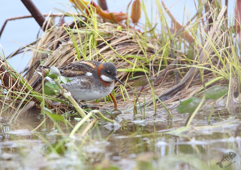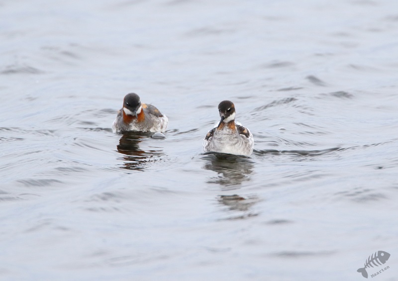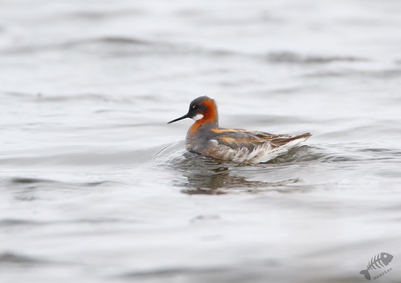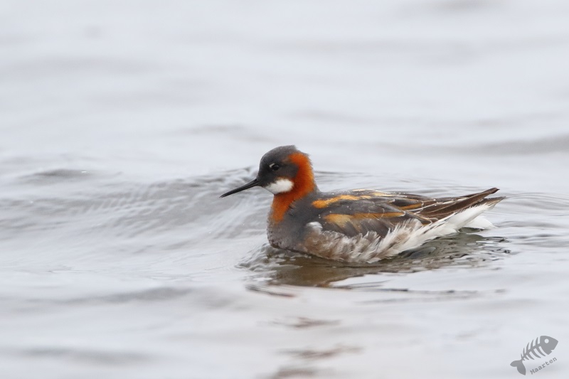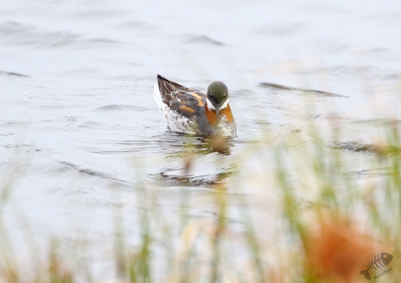 Ik had me voor de reis zeker 1 ding voorgenomen (een stuk meer dingen, maar dit was de eerste waar ik iets mee kon doen), en dat was naar Vadsø te gaan en dan meteen door naar Vadsøya om naar het meertje aan de oostkant van het eiland te gaan om te zien of er Grauwe Franjepoten zouden zijn. In het boek had ik gelezen dat er wel tot 200 zouden kunnen zitten en dat leek me wel wat! Ik heb dit altijd zo’n prachtige vogeltjes gevonden, zo bescheiden in de winter, maar zo kleurrijk in de zomer en dan komt hij ook nog voor in mijn favoriete vakantiebestemmingen! Aangezien het inmiddels juni is, gaat de zon nagenoeg niet onder in het hoge noorden. Ik kon dus nog rustig om 19 uur gaan, boodschappen doen in Vadsø en door naar de Franjepootjes. Ik had gedacht dat in het struikgewas op weg naar het meertje misschien wat zangertjes zouden zitten, maar ik hoorde alleen een dappere Fitis, die ik niet in beeld kreeg, en verder niets. Daarop ben ik maar snel doorgelopen en bij het meertje aangekomen te zijn bleek het, bijna, te kloppen! Er zwommen talloze Grauwe Franjepoten, geen 200 maar toch, en ik kon ze prachtig zien. In het begin zaten ze nog wat ver weg, maar toen ik een plek niet ver van het water had gevonden, een beetje verscholen, zwommen ze met een bepaalde regelmaat voor me langs en kreeg ik de volgende wenssoort prachtig op de foto. Alleen… Het weer was dramatisch. Het waaide enorm hard en koud en het regende er ook nog behoorlijk bij. Voor de vogels leek het niet heel veel uit te maken (ik zag zelfs een paring in het water), maar om te fotograferen waren het toch wel lastige omstandigheden. Ik besloot daarom dat het mooi was geweest en dat ik terug zou gaan naar het hotel om wat te eten en de eerste resultaten te bekijken. De kop was eraf! Dat smaakte zeker naar meer!