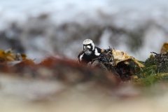 Tijdens mijn eerste bezoek had ik Nesseby ook al aangedaan, maar in het boek van Biotope stond beschreven dat deze plek zeer geschikt was voor vogelen in het voorjaar en daarom had ik toen niet veel gezien. Vol goede moed ben ik weer naar het kerkje gereden en zag daar al snel één van de soorten waar ik ook al op gehoopt had. Deze Tapuit liet zich nog niet direct vangen, zodat mijn eerste vogelfoto van deze trip er eentje werd van een prachtige Steenloper. Daarna kwamen de Tapuit en een Bontbekpleviertje langs de waterlijn. Toen ik verder het schiereilandje van Nesseby afliep, zag ik een paar vogels waarvan ik wist dat ze ook in Varanger voorkomen, maar ik had ze hier nog niet verwacht. Een groepje Kemphanen liep druk foeragerend rond en zo kreeg ik mijn eerste foto’s van de prachtig uitgedoste mannetjes. Verder zat er op de punt van Nesseby niet veel en ben ik weer teruggegaan naar de waterkant. Een Tureluurtje en een Witte Kwikstaart lieten zien dat zij echte bikkels zijn en dus zelfs hier terug te vinden zijn. Van de Bonte Strandloper had ik het wel een beetje verwacht, maar deze had zijn mooiste zomerpak aan!