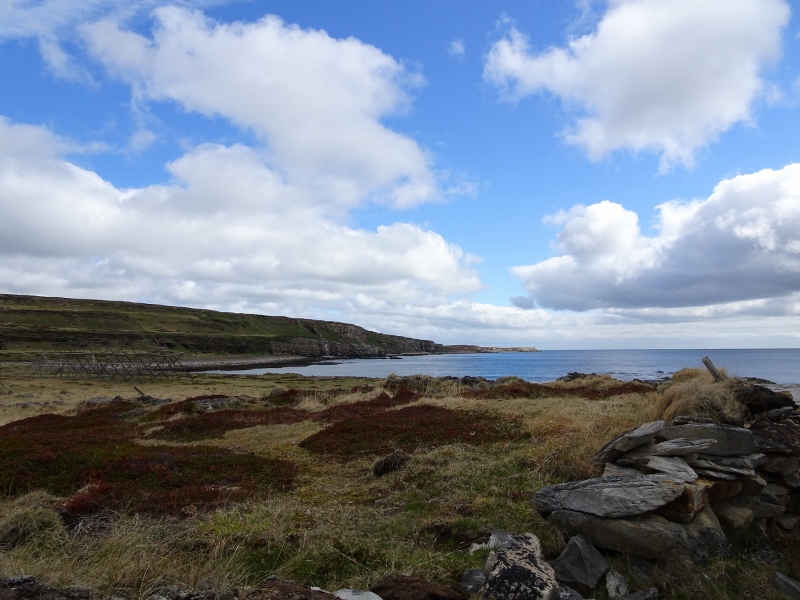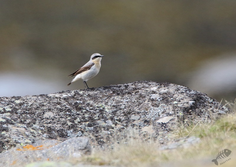 Ik ben weer verder gelopen tot ik ineens aan de andere kant van me opnieuw een Kleine Jager zag. Misschien was dit hetzelfde exemplaar, maar nu vloog hij vanachter de afgrond omhoog en landde daar aan de rand! Deze keer kreeg ik dus gelegenheid veel meer foto’s in verschillende poses te maken waarbij ik zijn verlengde staart ook heel mooi in beeld kreeg. Na een kleine 5 minuten vond hij het weer welletjes en vloog weer aan me voorbij. Weer wauw! Ik ben daarop weer verder gelopen tot het baken, de uiterste punt van de wandeltocht, waar ik nog een Graspieper en Tapuit zag.