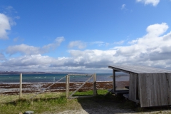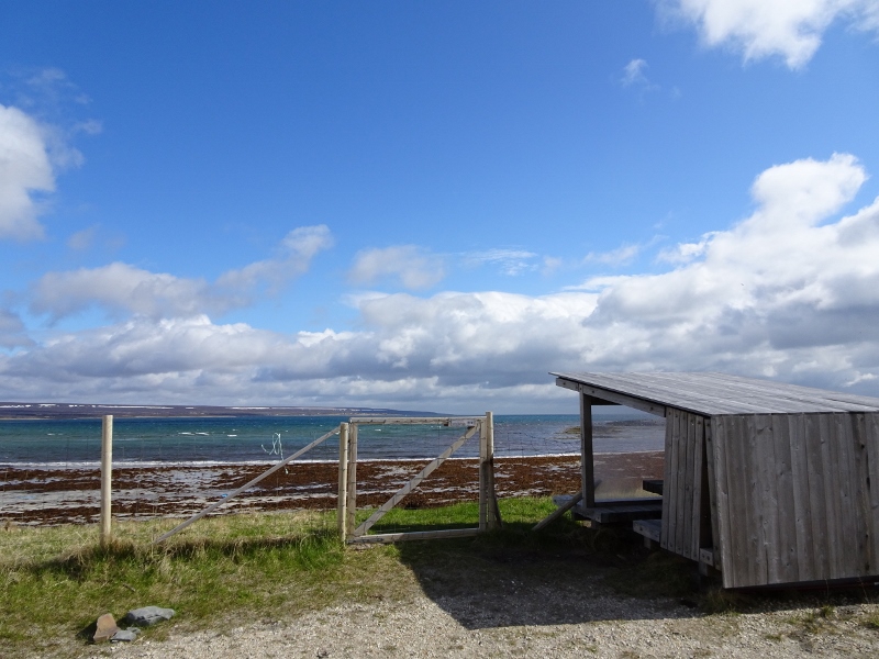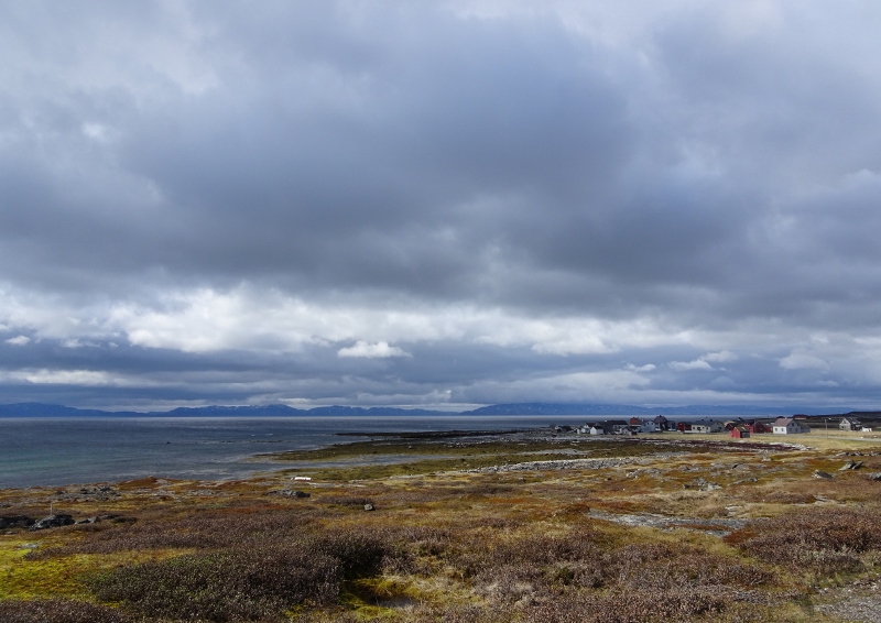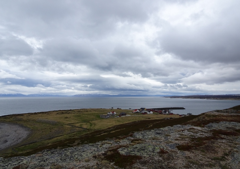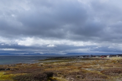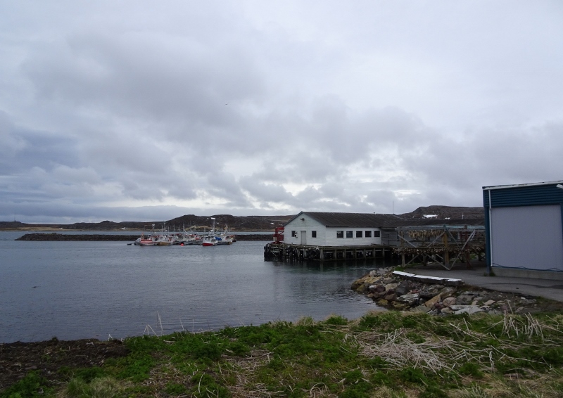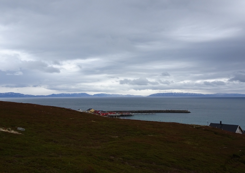 Ik ben weer verder gegaan en kwam langs de kust niet veel meer tegen. Wat het lastig maakt, mocht je iets interessants zien, is dat je eigenlijk op maar heel weinig plekken langs de hoofdweg kunt stoppen, De berm is vaak best steil en hoog en je moet dus geluk hebben als je iets ziet je ook meteen kunt stoppen (én dan natuurlijk niks wegjaagt…). Bij Kiberg ben ik weer even van de hoofdweg afgegaan om in het haventje te kijken. Vorige keer zwom hier een behoorlijke groep Stellers Eiders, maar nu zat er een Goudplevier langs de weg langs het strandje. Ook hier hoorde ik ineens weer het: PRRRIE-eh en ook nu weer ben ik in verwarring gebracht over welke soort het is. Ik ben geneigd te denken dat ik in Kiberg eerst een Visdiefje heb vastgelegd en verder alleen nog maar Noordse Sternen, maar ja: “korte verlengde staartpennen of lange verlengde staartpennen, korte/lange pootjes, “soms” tegen “meestal” zwarte punt aan de snavel”(ANWB Vogelgids van Europa) erg lastig te beoordelen op niet altijd even goede foto’s. Ik denk dat ik ze aardig op naam heb, maar 100%…