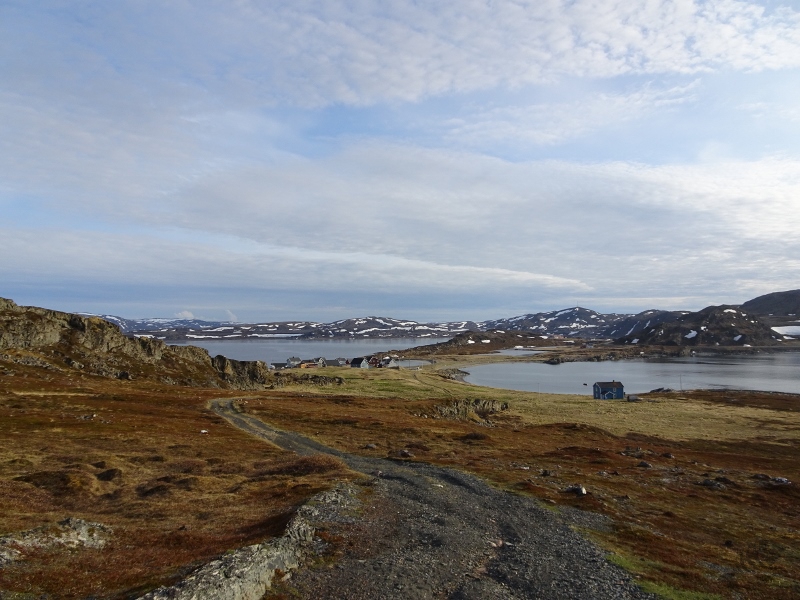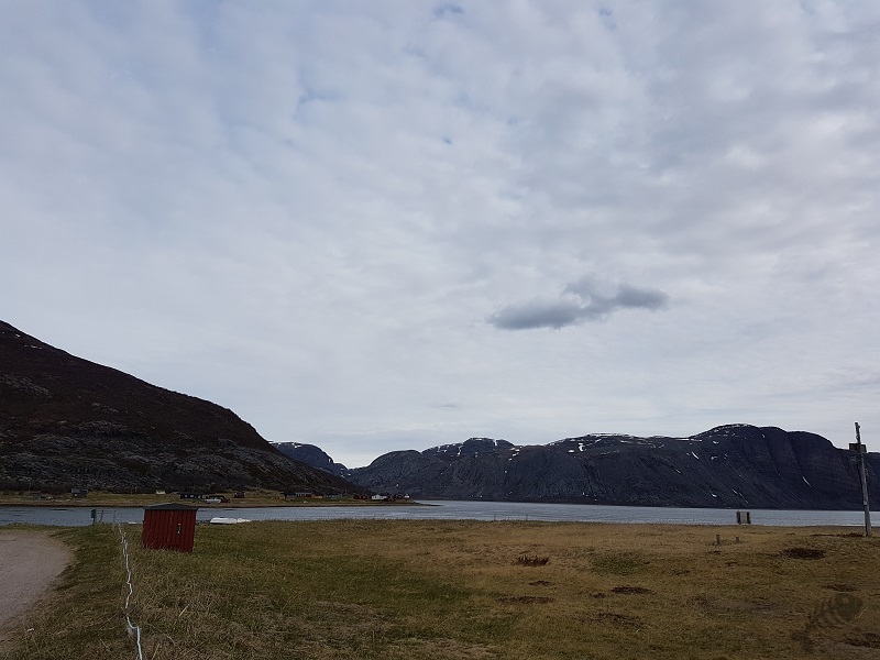 Ik moest verder… Vanaf de laatste stop ben ik nagenoeg aan één stuk doorgereden naar Kongsfjord. De enige keren dat ik stopte was om foto’s te maken van Kongsfjord aan een bijna spiegelglad fjord onder een nagenoeg blauwe lucht. Ik ben direct doorgereden naar Veines waar het Kongsfjord Gjestehus staat wat door meerdere mensen aanbevolen werd om een nacht te verblijven. Siren had de dag ervoor geïnformeerd of er plek zou zijn, en die was er, en ik kreeg een kamer in een huisje waarin ik alleen verbleef. Ik vertelde de dame wat mijn plannen voor de volgende ochtend waren, met Arctic Tourist op excursie, en vroeg haar hoelang het rijden zou zijn. Ik dacht dat de excursie bij Båtsfjord zou zijn, maar zij kende Arctic Tourist en dacht zeker te weten dat ze in Syltefjord zaten, één fjord en half uur verderop dan Båtsfjord. Dat betekende een half uur eerder op en aangezien ik er om 5.45 uur moest zijn, zou het een korte nacht worden. Dat vond ik wel erg jammer, want het was mooi weer, ik zat op de noordelijkste punt van mijn reis, wat zou kunnen betekenen dat ik de zon zou kunnen volgen hoe hij niet ondergaat… Maar ja, ik moest wel slapen. Met de eigenaresse heb ik ook een afspraak gemaakt over het avondeten en het ontbijt. Ik kon pas wat later eten, vanwege een gezelschap wat er zou zijn en ze zou broodjes voor me maken met kaas en zalm, aangezien ik ’s ochtends geen tijd zou hebben om ontbijt te maken.