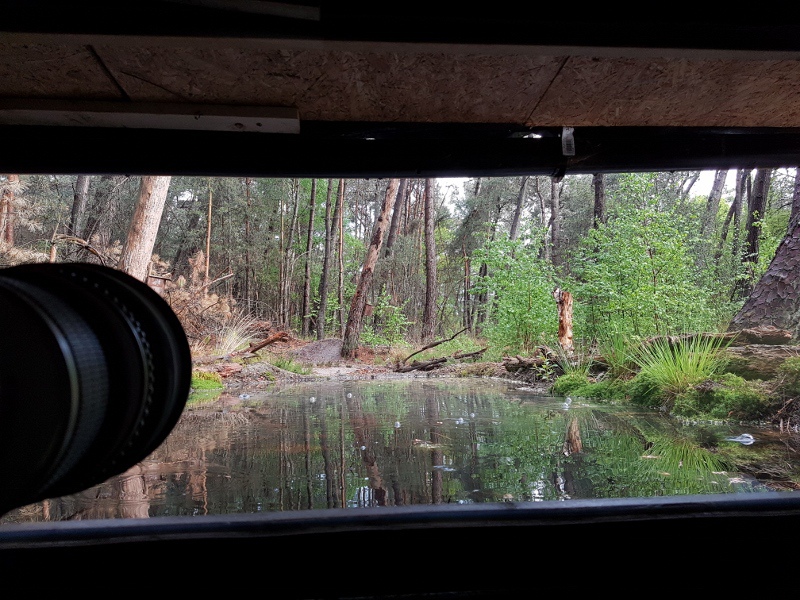 Ik ben tot 17.30 uur blijven zitten en heb toen de wandeling naar de auto en de rit naar huis weer ingezet. Het was heerlijk om weer eens te fotograferen vanuit een hut en sowieso om weer eens met vogels bezig te zijn. Het was wel een beetje spijtig dat het na ongeveer 2 weken droogte net nu weer was beginnen te regenen, wat wel goed was voor de natuur, maar minder voor het aanbod van vogels rondom het vijvertje… Ik heb echt een leuke dag gehad en met onder andere foto’s van een zingende Bonte Vliegenvanger, een knabbelende Eekhoorn en een miauwende Buizerd, kan ik zeker zeggen dat ik heel tevreden ben met de resultaten. Gelukkig mogen we weer!