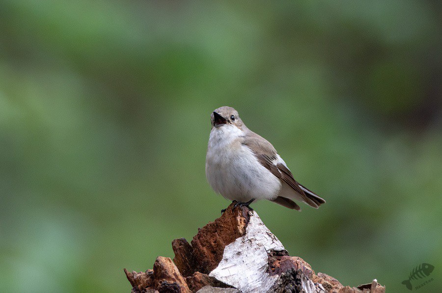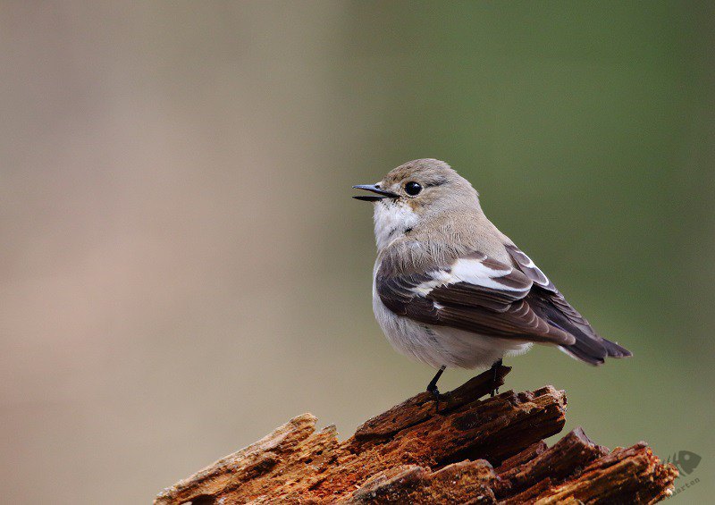 Helaas begon het toen net weer enorm te regenen en was het enige dat ik kon vastleggen de regen op het vijvertje. De regen duurde wel even, maar het mooie is, als het even droog is, de vogels al snel weer komen. En zo kon ik dan toch nog beginnen met het vastleggen van een aantal prachtige soorten, waaronder de gewenste Bonte Vliegenvanger. Ik heb heb hem de hele dag horen zingen en een aantal keer kwam hij in de ochtend in de buurt van de hut om ook daar even zijn liedje ten gehore te brengen. ’s Middags verscheen ook de Buizerd weer ten tonele, ik denk dezelfde als die ik eerder bij deze hut al een keer vastgelegd heb.