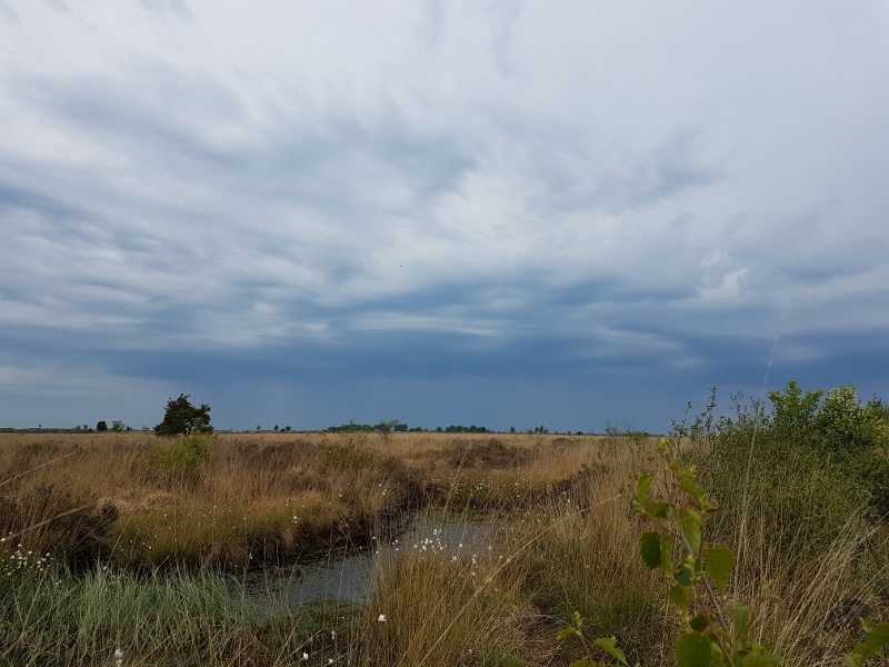 Ik had op waarneming.nl gezien dat er eerder een Roodgesterde Blauwborst in Fochteloo gezien was, maar had daar eigenlijk niet meer aan gedacht. Terwijl ik in de auto op weg was naar het bezoekerscentrum, stopte ik er net even voor aan de kant van de weg omdat ik een Spotvogel links langs de weg meende te horen. Dat klopte wel, maar het was in een dusdanig dicht struweel dat ik hem nooit in beeld kreeg. En terwijl ik daar naar aan het zoeken was, zag ik een plaatselijke boswachter naar de andere kant van weg kijken. Ik zag niet zo veel en toen hij vertrok en ik eigenlijk ook wilde gaan, viel m’n oog ineens op een Blauwborst die niet eens heel ver van me vandaan aan de rechterkant van de weg in een Wilgje zat te zingen. En wat bleek: het was de Roodgesterde variant! Zo mooi had ik hem zelfs in Noorwegen niet gezien en ik heb de camera dan ook even flink laten werken om hem mooi vast te leggen. Nadat ik deze verrassing een tijdje had geobserveerd, ben ik naar de parkeerplaats gereden en wilde aan de wandeling beginnen achter het bezoekerscentrum. Ik was nog geen 50 meter onderweg toen het behoorlijk begon te regenen. Ik heb heel kort getwijfeld, maar besloot toch de wandeling nog even uit te stellen en heb geschuild in een schuurtje van het centrum en probeerde ook hier een Spotvogel die écht in de buurt zat te zingen. Ik heb hem nooit gevonden… Toen het wat droger werd, wilde ik weer gaan, maar kwam net eerder genoemde boswachter naar me toe. Het was eigenlijk niet de bedoeling dat ik op dat stukje terrein kwam, maar het was nu oké omdat het toch rustig was. Corona hield de mensen toch wel weg. We raakte aan de praat over wat er zo allemaal in het gebied te zien is en ik vertelde dat ik een Wespendief had gezien. Dat verbaasde hem zeer: er was hier nog nooit een Wespendief waargenomen. Of dat klopte weet ik niet, maar natuurlijk twijfelde ik hierdoor, maar za bij thuiskomst dat het toch echt wel klopte en had ik daarmee toch mooie een apart geval voor het gebied te pakken.