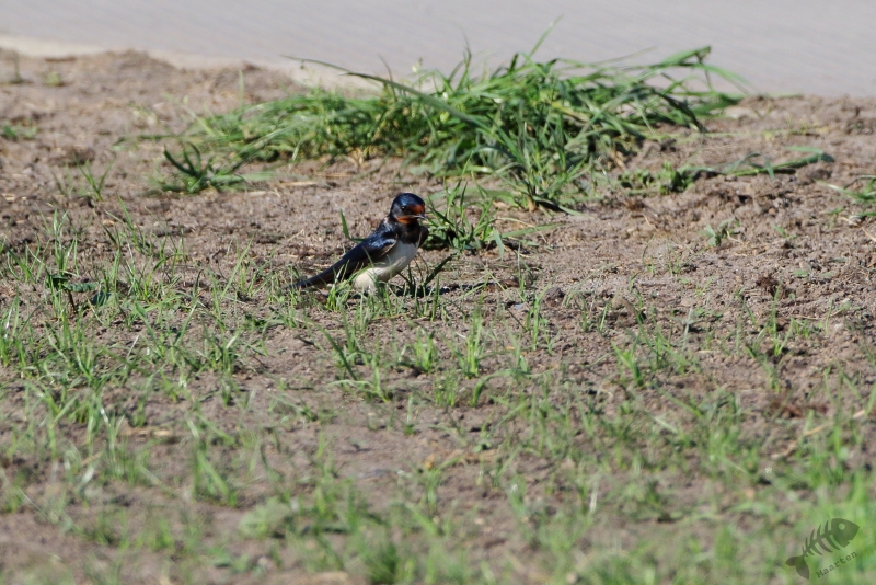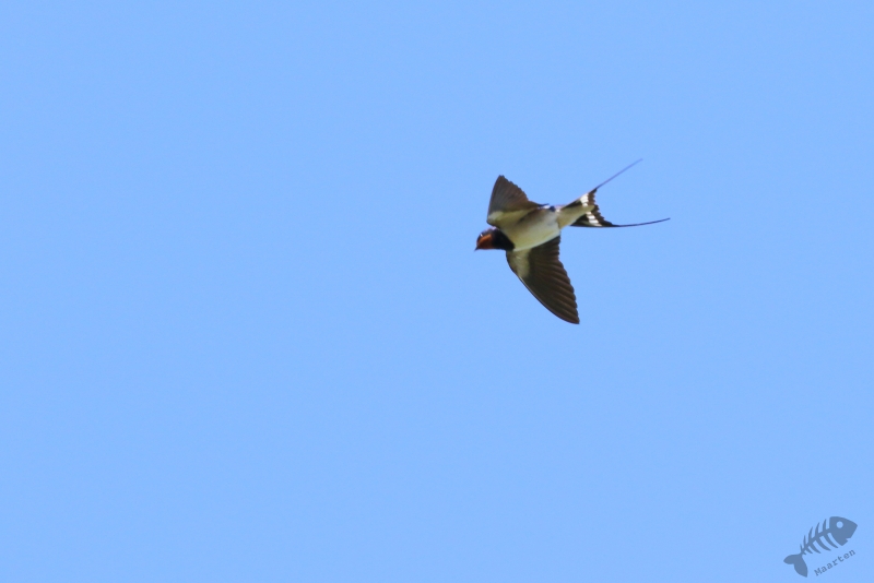 Na voldoende te zijn afgekoeld, zijn we weer terug naar de boerderij gereden. Ik heb mijn fotospullen uit de auto gehaald en kon eindelijk beginnen één van mijn favoriete soorten, de huiszwaluw proberen vast te leggen. De eigenaar vertelde me dat ze regelmatig nestmateriaal kwamen halen vlak bij de kuilvoerbak in een klein modderpoeltje. Door de droogte van de laatste dagen was er helaas geen modder meer en kwamen de Zwaluwen ook niet veel aan de grond. Dan maar vliegbeelden… Dit blijft natuurlijk een enorme uitdaging en als er dan ook af en toe Gierzwaluwen om aandacht schreeuwen, wordt het best een lastige klus… Nadat m’n familie weer huiswaarts was gekeerd, ben ik het bedrijf verder gaan rondlopen en vond een plek waar de huiszwaluwen nog wel bezig waren te proberen wat nestmateriaal te pakken. Ook hier was de grond alleen kurkdroog en ik bedacht dat ik ze misschien kon helpen met wat water op die plek te gieten. Als ze daar op af zouden komen, waren zij geholpen en ik kon misschien mooie plaatjes maken. Het water heeft ze niet echt kunnen verleiden waarop ik besloot ze verder met rust te laten en weer richting Roden te vetrekken om er niet te laat aan te komen. Na de gastheer en vrouw hartelijk bedankt te hebben voor hun gastvrijheid en een heerlijke dag, ben ik in de vogelauto gestapt en naar Roden vertrokken.