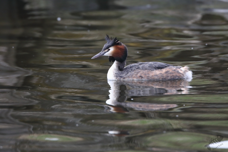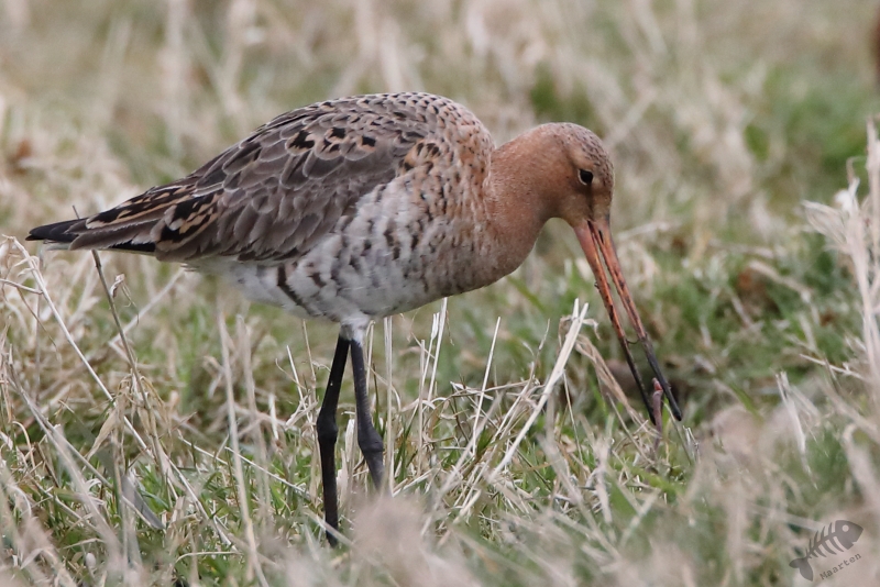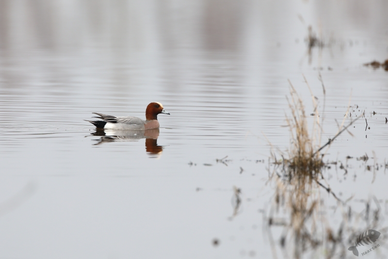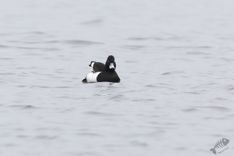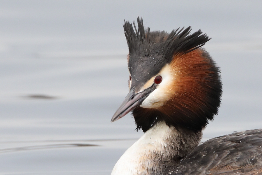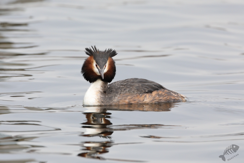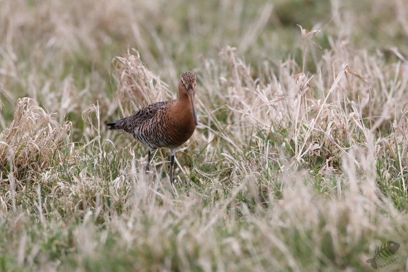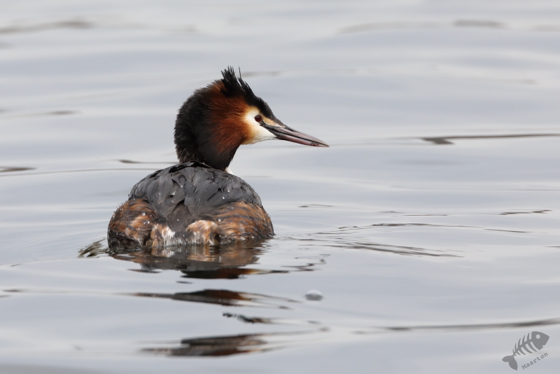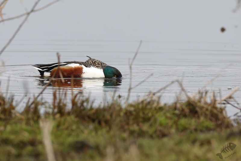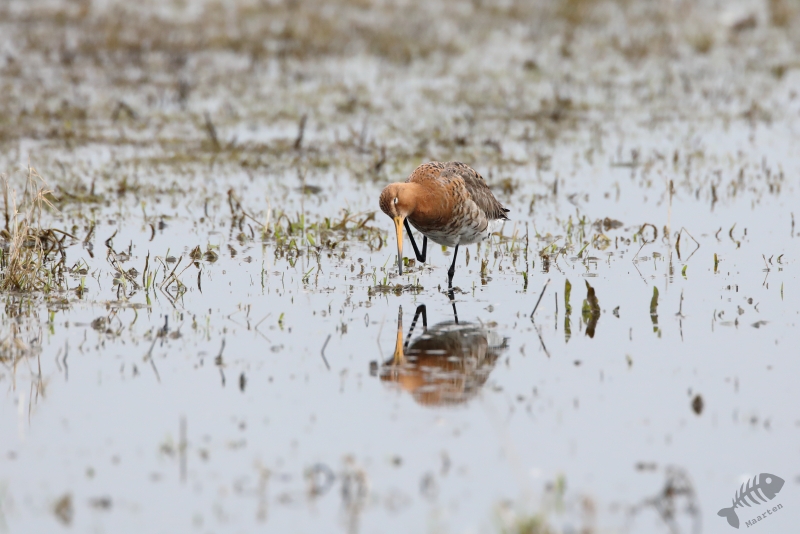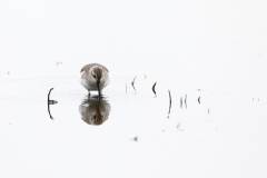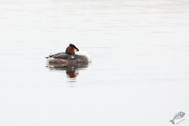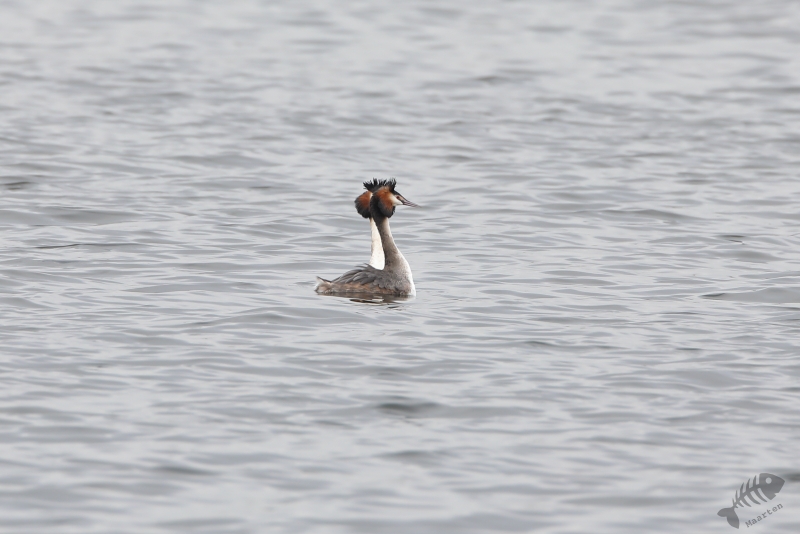 Ook nu gonsde het weer van het vogelleven (terwijl het niet eens heel gunstige omstandigheden waren) en heb ik weer het nodige fraais kunnen vastleggen. Natuurlijk zijn Grutto’s altijd heel dankbare vogels om te fotograferen, en zijn er hier best nog wel te vinden, maar ook voor de Veldleeuwerik (ook al zo’n soort die het moeilijk heeft) en de Fuut maak ik even tijd om ze te vereeuwigen. Daarvoor was ik eerst naar de westkant van de Polder gereden en kwam uit bij de parkeerplaats bij het Gemaal. Op het Nijkerkernauw zwommen weer de nodige vogels, waaronder ook nog steeds het groepje Brilduikers. Ze waren nog steeds druk met baltsen en een koppeltje Futen zocht elkaar ook weer even op om de band te verstevigen. Behalve de Futen bleef alles wel ver weg en besloot ik maar naar de oostkant te gaan om te zien of ik daar ook nog wat moois zou zien.