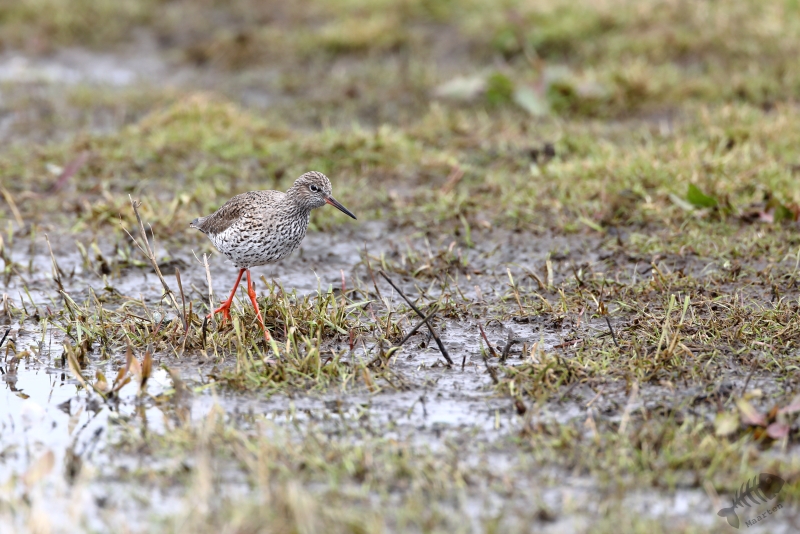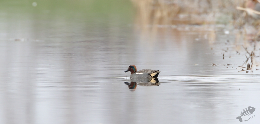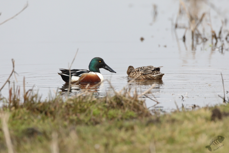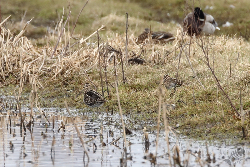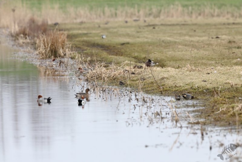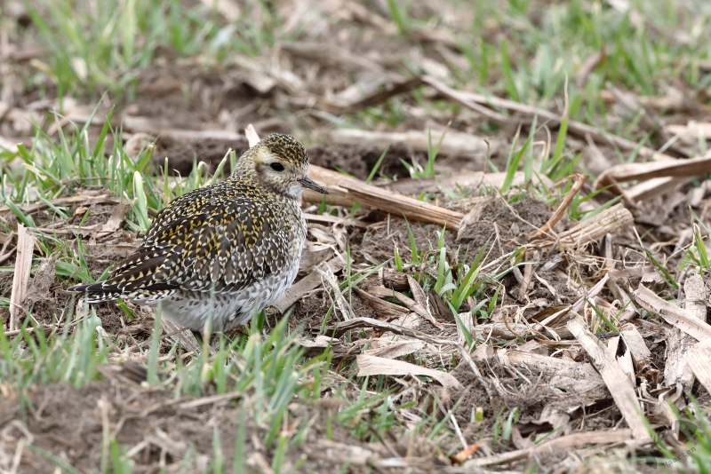Langs de weg die richting de snelweg loopt, zag ik inderdaad wel iets heel moois: een Goudplevier zat vlak langs de weg. Hij reageerde nauwelijks op me, maar het leek me dat het beestje niet helemaal fit was… Ik hoop maar dat hij veilig op z’n broedgronden terug is gekeerd. Langs het weggetje dat verder naar het oosten loopt, is ook altijd wel iets interessants te zien. Ook hier heb je vaak wel een verrekijker nodig om één en ander te ontdekken, maar dan heb je ook wat! Heel in de verte vond ik een groepje Watersnipjes langs een slootje. Aangezien dit 1 van mijn favoriete soorten is, is hiermee direct de dag geslaagd! Als je dan ook nog de mogelijkheid krijgt om een aantal fraaie Eenden en een Tureluurtje vast te leggen, kan de dag eigenlijk al niet meer stuk.
