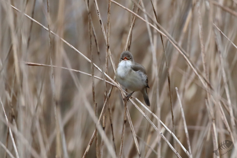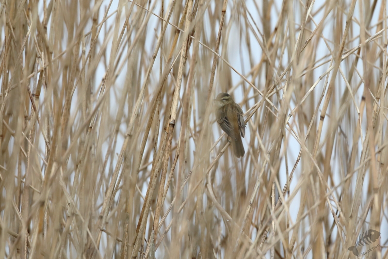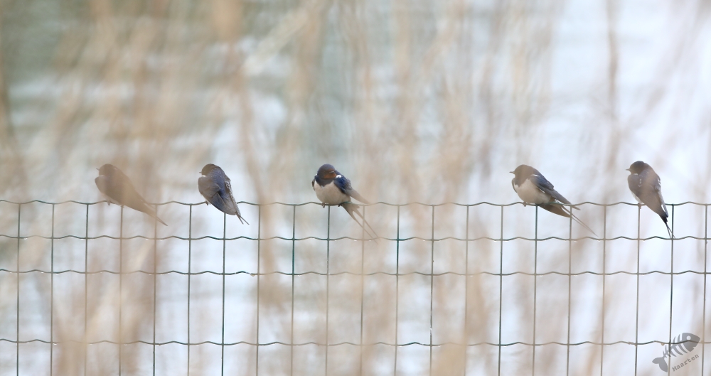 Na enige tijd, toen ik het idee had dat ik de Ruiters voldoende had weten vast te leggen, heb ik me weer omgedraaid en me weer even op het riet gestort. De Boerenzwaluwen waren weer in groten getale teruggekeerd en waren op een hek druk hun reis aan het evalueren. De Rietzanger leek er het zijne van te denken…