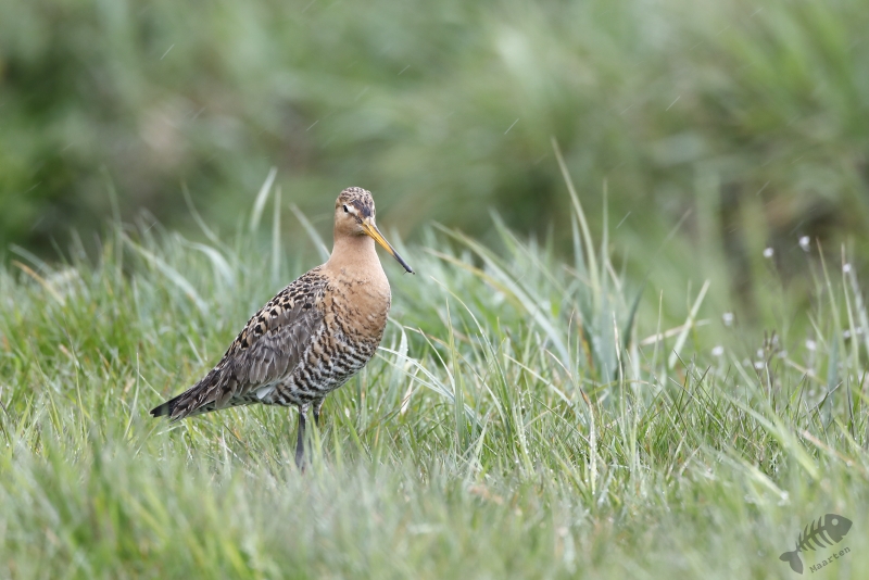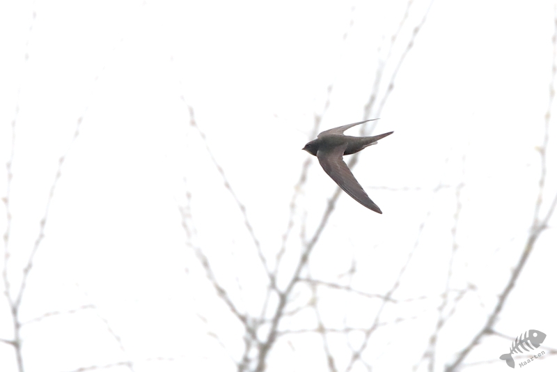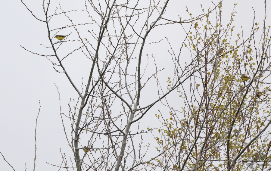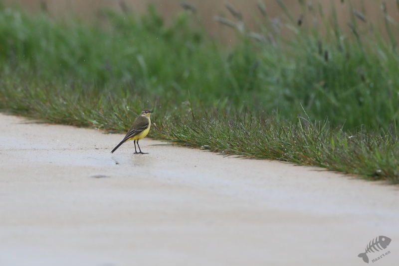 Als eerste ben ik naar de oostkant gereden om daar het fietspad over de dijk af te lopen richting verschillende plassen binnendijks. Hier is alleen één probleem aan: je moet een groot aantal rietkragen voorbij en dat lukt me niet zonder te stoppen wanneer ik iets interessants zie of hoor. En laat ik nou heel vaak iets interessants zien of horen… Het begon met Kleine Karekietjes die zich heel behoorlijk lieten horen én zien en kon ik de vogeldag met enkele opnamen van deze ijverige zangertjes beginnen. Enkele Grasmussen, wat eerst altijd frustratiesoorten van me waren, werkten ook prachtig mee. Ik vind het ook steeds mooier om de vogel in z’n omgeving vast te leggen en niet per se in vol ornaat. Dit vertelt vaak meer dan een portretje… Naarmate ik verder liep, liep het aantal vogels ook steeds verder op. Er kwam nog een Visdiefje bij, een Graspieper en tot mijn grote plezier liet ook de Snor zich prachtig horen en zien. Terwijl ik stand te wachten tot de Snor wat vrijer te zien was, scheerden er vrijwel constant Gierzwaluwen over. Misschien was het vanwege het mindere weer dat ze niet hoog vlogen. Het gaf mij in ieder geval de gelegenheid te proberen ze van relatief dichtbij vast te leggen. Maar oh oh, wat zijn ze toch vreselijk snel! Een Koekoek, die zich al wel aangekondigd had, was me ook te snel af, zodat ik alleen nog een achterkantje kon portretteren. Het viel me verschillende keren op dat er regelmatig een groepje vogels vanaf de dijk opvloog en in de bomen aan de overkant van het water ging zitten en daarna weer terugkwam. In eerste instantie was me niet duidelijk wat het waren, maar op een gegeven moment zag ik dat het Gele Kwikstaarten waren. Best vreemd gedrag voor een Kwikstaart: in bomen zitten. Daarom had ik ze in eerste instantie ook niet herkend.