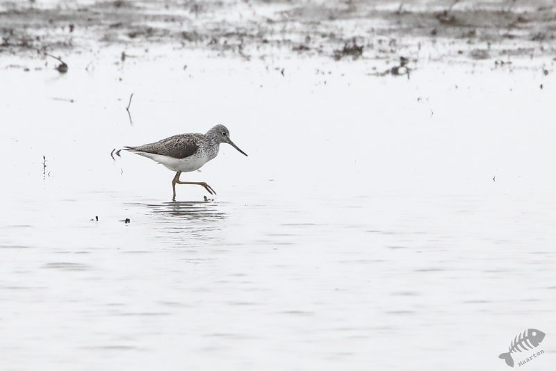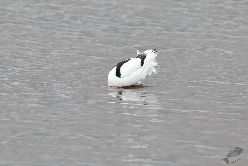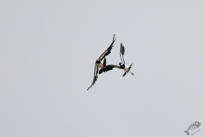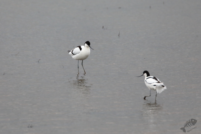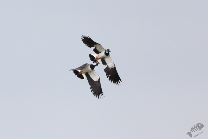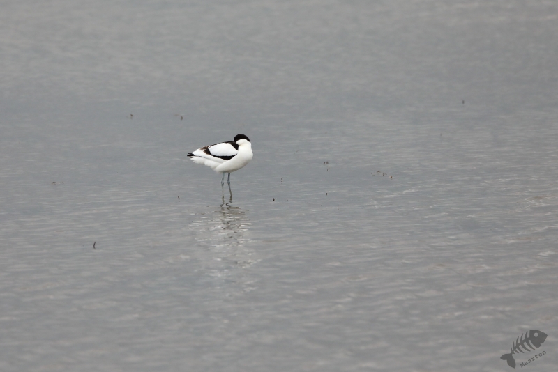 Langzaamaan ben ik weer richting de auto gelopen met oren en ogen wijd open. In een volgende plas zag ik nog een mooie Taling en een koppel altijd sierlijke Kluutjes. Ik vond ook nog een Bosruiter, om de verzameling voor vandaag nog wat uit te breiden, en maakte als laatste nog wat plaatjes van een paar lucht-acrobaterende Kieviten.
