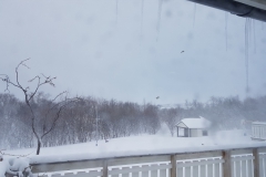 Nou vond ik dat zelfs niet zo heel erg. Binnen hadden we verse koffie, zicht op de vogels op de birdfeeder en de mogelijkheid al een goede start te maken met het bekijken en bewerken van de foto’s en misschien zelfs al te beginnen met schrijven. Ik vond het ook niet zo erg om, na 3 best intensieve dagen, een dagje rustig aan te doen.