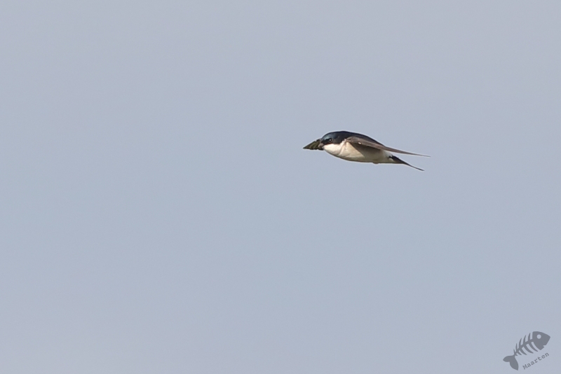 Gelukkig bleken ook de Huiszwaluwen weer teruggekeerd te zijn en aanwezig rond het moderne gemaaltje. Natuurlijk kan ik deze prachtige Zwaluwtjes niet zomaar aan me voorbij laten vliegen en heb ik even de tijd genomen ze proberen in vlucht vast te leggen. Dit blijft een uitdaging, maar ik heb wat plaatjes kunnen maken en daarom ben ik weer verder gegaan. Ik ben naar de oostkant van de polder gereden om te gaan kijken of daar in de rietkragen nog wat moois te zien zou zijn (wat vast wel het geval zou zijn) en ook om de weiden en plassen aan de zuidkant van de dijk/fietspad te scannen of daar wat interessants zou zitten (wat vast wel het geval zou zijn…).