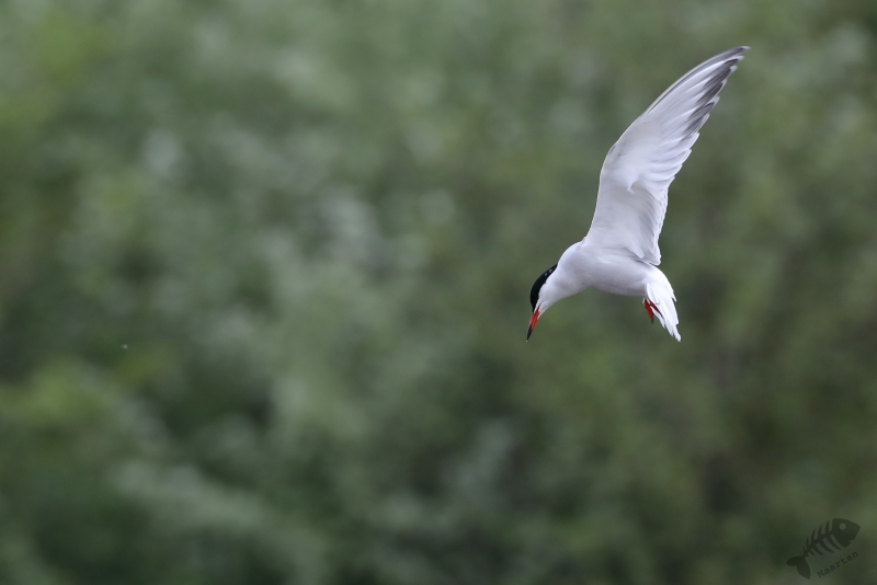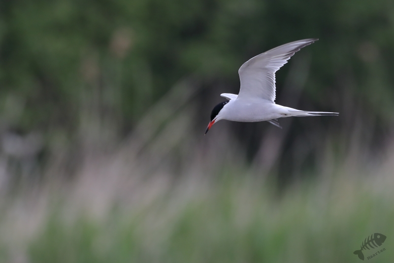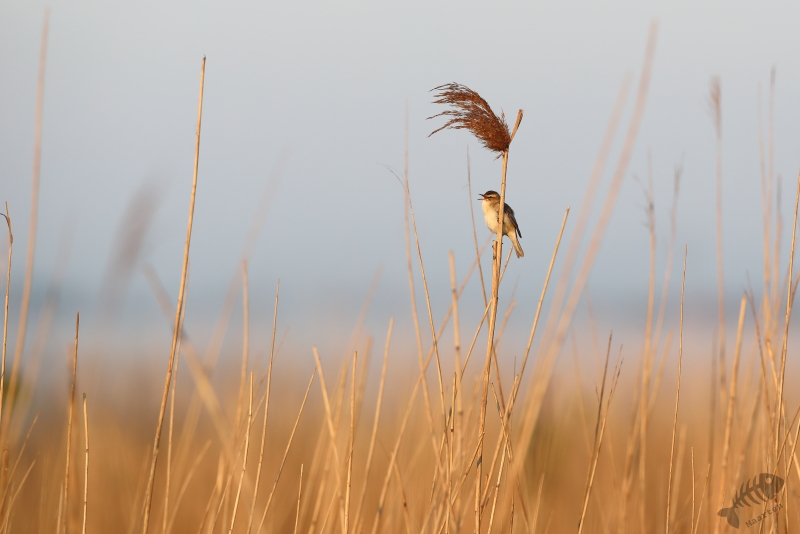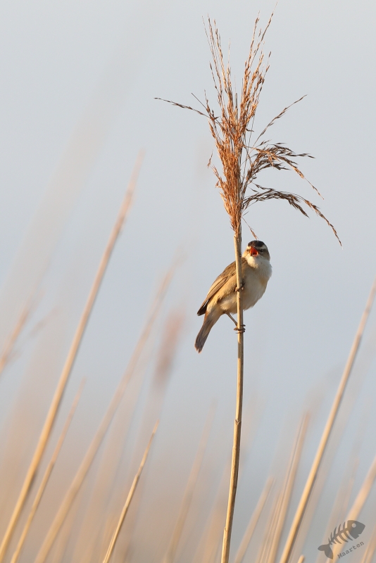 Het werd iets bewolkter waardoor het licht prachtig diffuus werd en de kleuren van de vogels ontzettend mooi uitkwamen. Een Kluut in de plassen onder aan de dijk kreeg ik zo heel mooi in beeld, maar ook een aantal jagende Visdiefjes boven de vaart. Zij maakten hun komst regelmatig bekend door middel van die heerlijke snerpende roep, zodat ik op tijd kon richten en schieten. Wat ook erg hielp was dat ze een aantal keer vlak voor me bleven staan bidden, wat het fotograferen wel heel erg vereenvoudigd. Tussen deze soorten door kon ik me opnieuw vermaken met verschillende Rietzangertjes. Ook nu deden ze weer vreselijk hun best om zich goed te laten horen én zien. Het mooie licht maakte de plaatjes helemaal af.