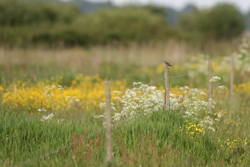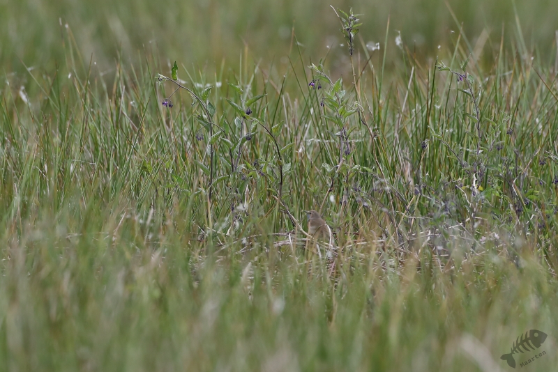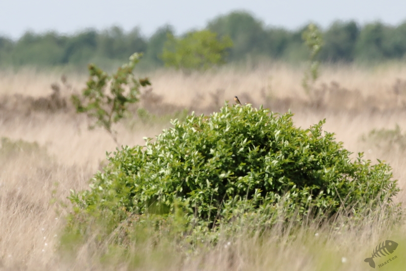 Hierna zijn we doorgegaan om het Paapje (en al het andere) te zoeken. Aan het begin van het pad bij het “Paapjesveld” zat een Boompieper heel mooi in een Vliegden te zingen en hoorden we een Paapje verderop zingen. Deze leek niet dichterbij te komen en bleef het dus bij een plaatje op afstand. We hebben het grote pad afgelopen, richting de grens met Friesland en kwamen hier alleen nog de andere Pieper (Gras) tegen. Her en der was het pad behoorlijk nat, wat het lopen soms best lastig maakte. Maar hopen dat het nat genoeg is om een droge zomer goed door te komen… We zijn over het fietspad teruggelopen waar aan het einde, bijna bij de auto, de neef van het Paapje fraai zat te zingen.
