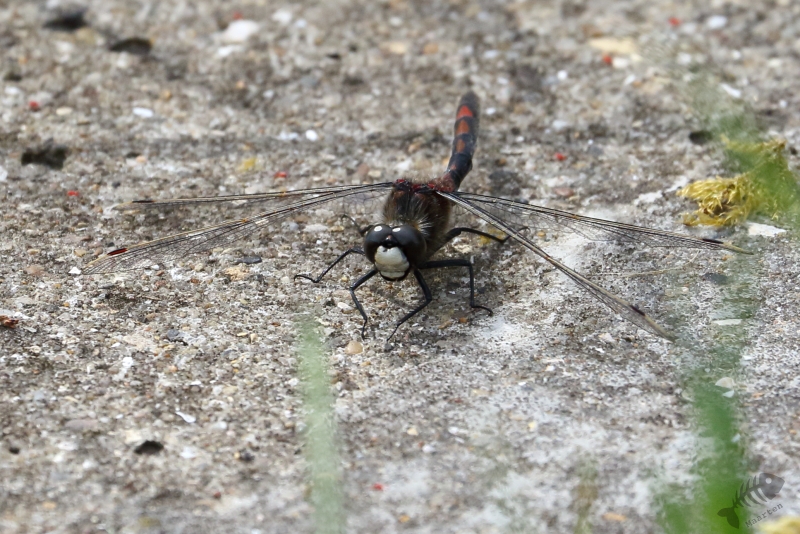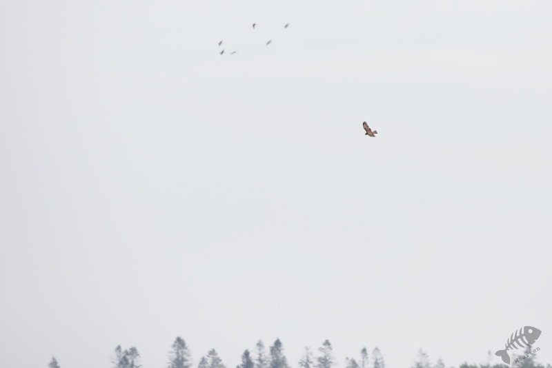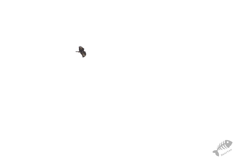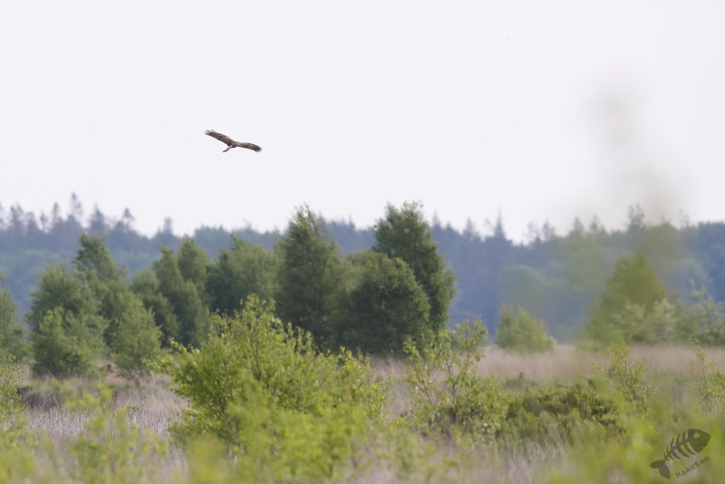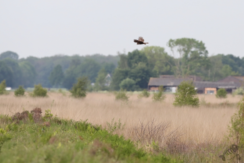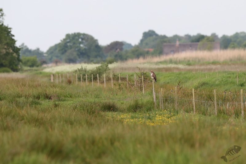 We zijn de weg weer verder afgereden en kwamen in het open gedeelte voor het bezoekerscentrum. Ik had ter voorbereiding op dit bezoek al een beetje bekeken wat er de laatste dagen in het Veen zoal waargenomen werd en hier bleek ook de Grauwe Klauwier bij te zitten. Elk jaar zie ik dat ze gezien worden, maar zelf heb ik er hier dus nog nooit 1 gezien. Deze keer was het anders. M’n oog viel op een lichte vlek in de verte en met de telescoop kon Arie met zekerheid zeggen dat het de Klauwier was. Voor een foto zat hij veel te ver weg, maar ik heb er toch maar een plaatje van gemaakt. Terwijl ik daar mee bezig was, kwam de vogel dichterbij en liet zich prachtig zien! Zo had ik mijn Nederlandse exemplaar toch ook nog mooi te pakken! We hebben nog even lekker zitten genieten van deze schitterende vogel, waarbij ik ook nog even een mooie Buizerd kon vastleggen. Daarna zijn we weer doorgereden naar het einde van de weg door het gebied om te kijken of we de Boomvalken, Spotvogel of mooie Libellen konden vinden.