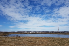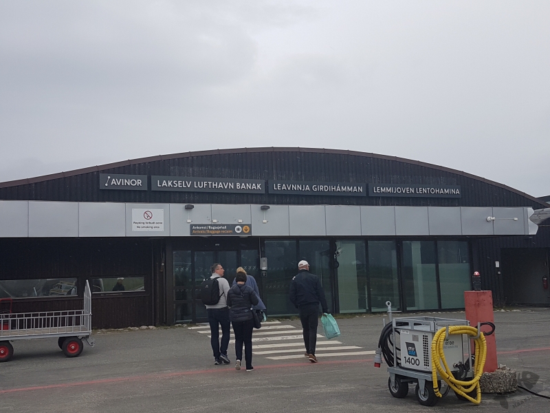 De volgende ochtend weer vroeg op zodat ik om 7uur weer met de bus naar vliegveld Gardemoen kon vertrekken, om daar wel langere tijd in de rij te moeten staan om door de douane te gaan. Maar ook nu was ik ruim op tijd klaar en moest ik de tijd zien door te komen voor de vlucht voor het laatste stuk zou vetrekken. Maar om 5 voor 9, geheel op tijd, trok de piloot aan de handels en zetten we koers naar het noorden. Ook deze vlucht verliep heel soepel, maar zo’n half uur voor de landing klonk er een heel verhaal door de luidsprekers. Toen de Engelse versie verteld werd, bleek het dat er enorm harde wind boven Kirkenes stond en dat er heel lage bewolking hing. Landen leek een lastige opgave, maar de piloot zou 1 poging wagen om te kijken of het te doen was. Mocht dat niet het geval zijn, dan zou hij het toestel verticaal trekken en met enorme bocht naar links naar een ander vliegveld vliegen. Toch een beetje opgewonden in afwachting van wat zou gebeuren, zaten mijn mede-passagiers en ik te wachten hoe het zou gaan. En het ging niet! Een tijdje vlogen we door dichte bewolking, het toestel schudde behoorlijk en ineens loeiden de motoren enorm en werden we achter in onze stoelen gedrukt! Het toestel ging inderdaad bijna verticaal en maakte een enorme bocht naar links. Eenmaal boven de bewolking werd het weer wat rustiger en zette de piloot koers naar Lakselv, hemelsbreed zo’n 200km naar het westen.