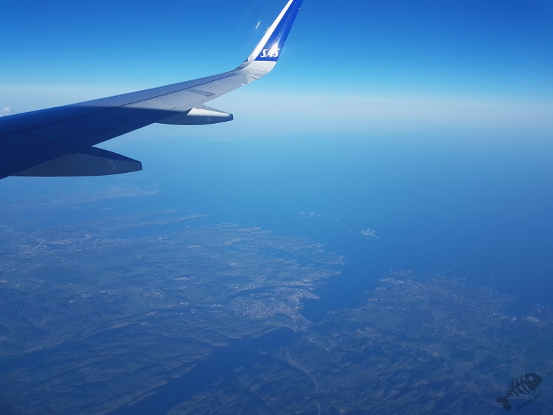 Het was een rustige vlucht met prachtig weer, waardoor ik het vasteland van Noorwegen prachtig kon zien en zag dat we over Larvik heen vlogen. Hier kun je ook met de ferry aankomen vanuit verschillende vertrekhavens. Met prachtig, zonnig licht, landden we op Oslo en kon ik de pendelbus nemen naar het hotel waar ik in maart ook overnacht had. Ik was daar nu eens redelijk vroeg in de avond waardoor ik lekker rustigaan kon doen en redelijk op tijd kon gaan slapen.