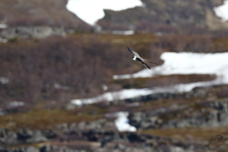 Het andere geluid, de blatende Watersnippen, zet me ook altijd op scherp. Op de eerste plaats is het de kunst om ze te ontdekken terwijl ze om je heen cirkelen. Wanneer dat gelukt is, is de volgende uitdaging natuurlijk proberen hem vast te leggen. Daar kan ik een hele tijd druk mee zijn, maar uiteindelijk was het me ook wel aardig gelukt. Het kan altijd beter, maar ik was zeker niet ontevreden. Daarop hebben we besloten dat het voor hier, voor nu wel mooi was geweest. Het was inmiddels bijna 18uur en we moesten nog een stukje rijden. Ook wilde Anders me nog een aantal plekken langs de kust van het Varangerfjord laten zien, die nog wel eens interessant konden zijn voor een allerlei aan waders.