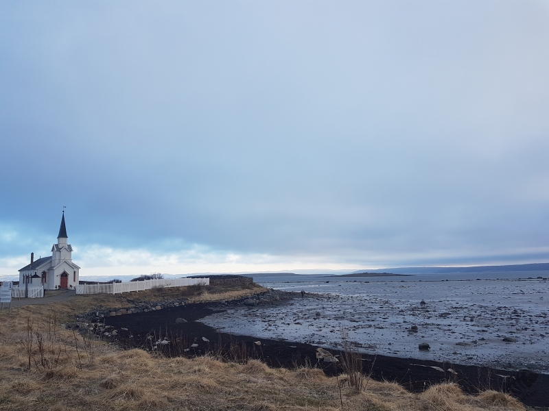 Maar eerst stopten we toch nog een keer bij Høyholmen. Anders wilde heel graag nog een keer gaan kijken of hij de (vermeende?) Krombekstrandloper terug kon vinden. Helaas voor hem lukte dat niet, maar ik had wel de mogelijkheid om een Bosruiter van heel dichtbij te zien. Vervolgens hebben we nog even gestopt in Austertana om even van de rust en het uitzicht te genieten. Rond 20uur waren we weer bij het Fjord. De eerste stop daar was bij een nietszeggend strandje waar inderdaad verschillende waders aan het foerageren waren. Er liepen Bonte Strandlopers en er zwom een groep Grote Zaagbekken. De volgende stop was bij Nesseby. Bij het kerkje bleek het laag water en lag er een groot gebied droog. We zagen een Rosse Grutto waarvan ik een aardig sfeer plaatje kon maken. Een David Attenborough in spe kroop bijna naar de vogel toe om te proberen hem van zo dichtbij mogelijk te fotograferen. Anders en ik konden ons niet helemaal vinden in deze natuurvorser en hebben hem maar laten gaan. Wij reden verder naar Vestre Jakobselv. Dit was onze laatste stop voordat we weer naar ons hostel zouden gaan. In de riviermonding, tussen verschillende gebouwen in, lagen ook wat strandjes die interessant zouden kunnen zijn. Deze avond was het er rustig.