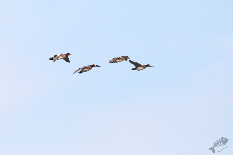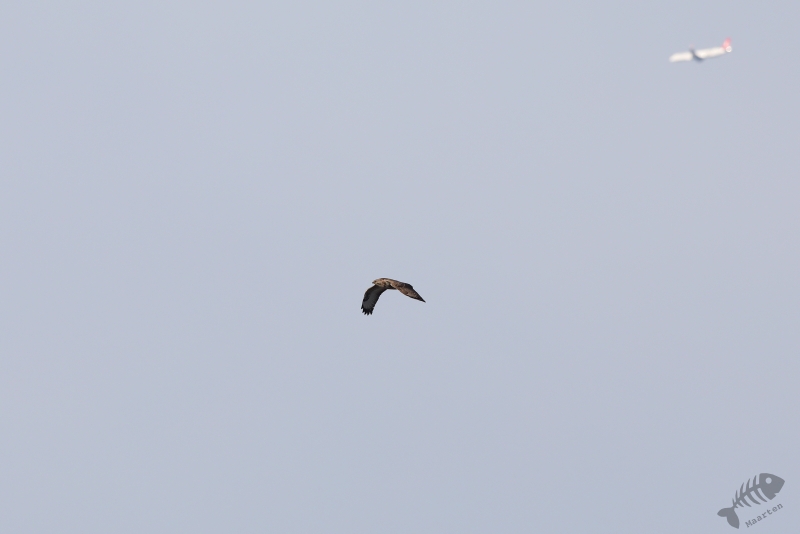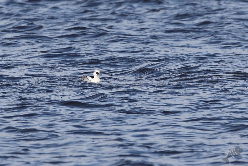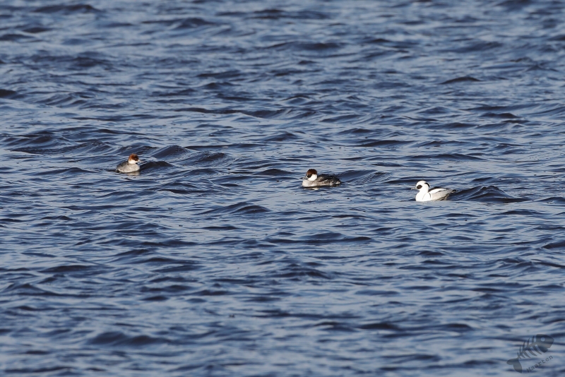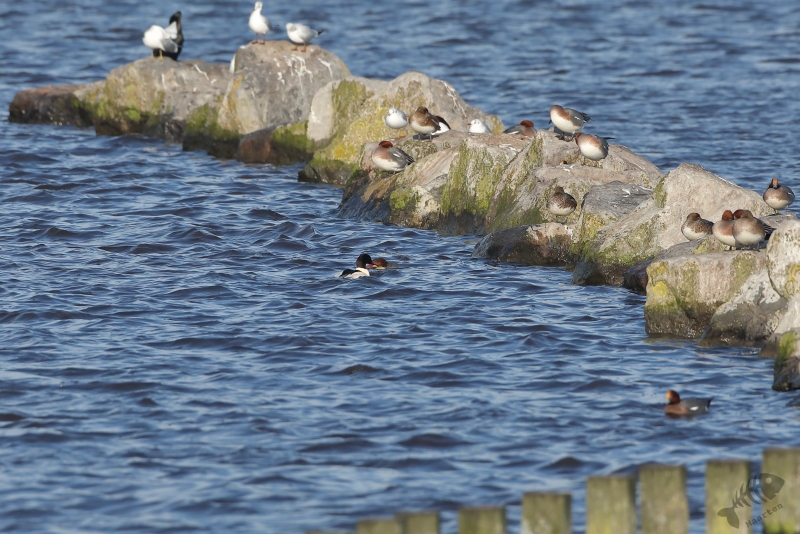 Verder was het behoorlijk rustig daar en besloot ik naar de oostelijke kant te gaan. In het water aan de Zeedijk nét na de rotonde is het ook altijd de moeite waard even te kijken. Op het moment dat ik op de dijk stond vloog er een mooie Buizerd over en verder zaten er op het water Smienten, Grote Zaagbekken en gelukkig ook weer enkele Nonnetjes. In de hoop dat deze laatsten misschien wat dichterbij wilden komen, ben ik een klein stukje de dijk aan de waterkant afgegaan en heb een hele tijd zitten wachten. Helaas trapten de mini-Zaagbekkies er niet in en bleef de afstand eigenlijk nét iets te groot. Maar goed: ik heb verschillende Nonnetjes gezien en vast kunnen leggen en daarmee was mijn missie eigenlijk wel geslaagd.