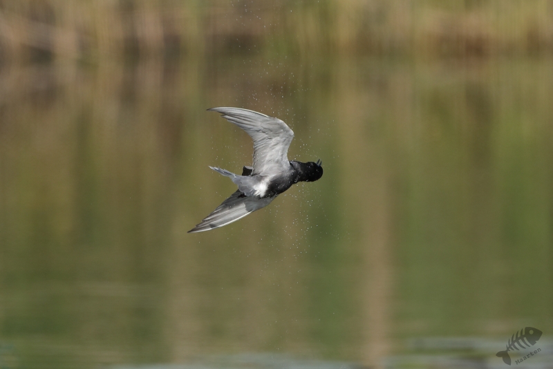 In goed overleg met thuis, kon ik vandaag nog een halve dag gaan fotograferen, en wel: de M-stand écht gaan uitproberen. Waar anders dan in de Zouweboezem kon ik dat beter doen, dus zat ik ’s ochtends om 8 uur in de auto om voor de 3de keer in 1 maand tijd naar de Zouweboezem te rijden. Maar nu had ik niet per se nieuwe soorten voor ogen of speciale plaatjes, maar wilde ik heel graag het geleerde van 14 mei in de praktijk brengen. Het leek me dat, wanneer je niet op de belichting hoeft te letten en dus eigenlijk alleen op de focussing, het een stuk rustiger werken zou zijn en daarmee een heel stuk leuker! En met welke uitdagende soort als de Zwarte Stern of Witvleugelstern zou je dit beter kunnen uitproberen?