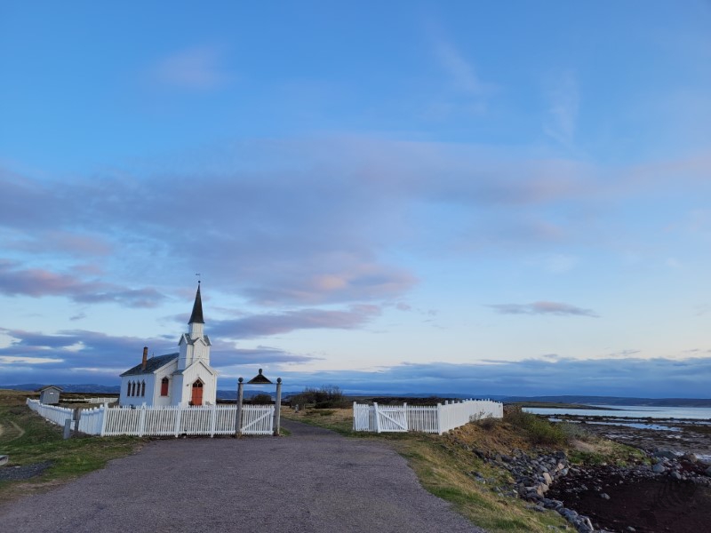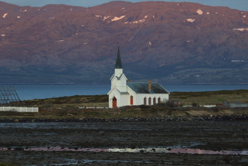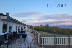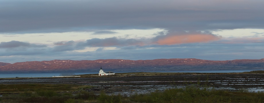 Nesseby is natuurlijk ook een vaste stop en met de steeds lager hangende zon en daarbij passend licht, had ik het kerkje nog niet eerder gezien. Het was een prachtig gezicht over het Fjord met op de achtergrond oranje/rood kleurende bergen. Na verschillende foto’s gemaakt te hebben, ben ik dan echt, zonder tussenstop, doorgereden naar Vestre Jakobselv en Varangertunet. Ik werd weer zeer hartelijk ontvangen en kreeg mijn vaste kamer toegewezen. Ik heb er snel m’n spullen neergezet en om kwart over 12 nog een laatste foto gemaakt van het “lichtblijf fenomeen”. Moe, maar zeer blij dat ik er weer was en met het heerlijke begin, ben ik om half 1 gaan slapen. Morgen weer op tijd op om te beginnen. Heerlijk!
