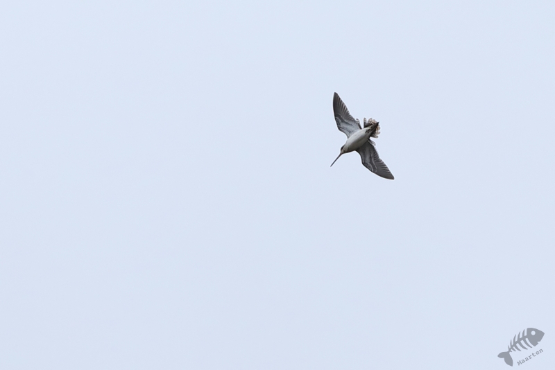 Na het eten, rond 9 uur, ben ik weer gaan posten voor de Houtsnip. Ik kreeg gezelschap van de Brit en Australiër en we hebben gezellig staan praten over reizen en vogelen in het algemeen. Ik kon nog niet tippen aan de (vogel)reisverhalen waar deze 2 mannen over vertelden (ze hadden letterlijk de hele wereld al afgereisd waarbij vogels vaak het thema was), maar ze vertelden met een enorm enthousiasme wat zeer aanstekelijk was. De Houtsnip liet zich, in eerste instantie, niet zien en de mannen gingen weer naar binnen. Ik wilde per se niet opgeven en na een klein uur werd mijn geduld beloond! De Houtsnip kwam voorbij, maar verraste mij helemaal, zodat ik alleen de achterkant kreeg vastgelegd. Misschien kreeg ik verder deze week nog een herkansing…