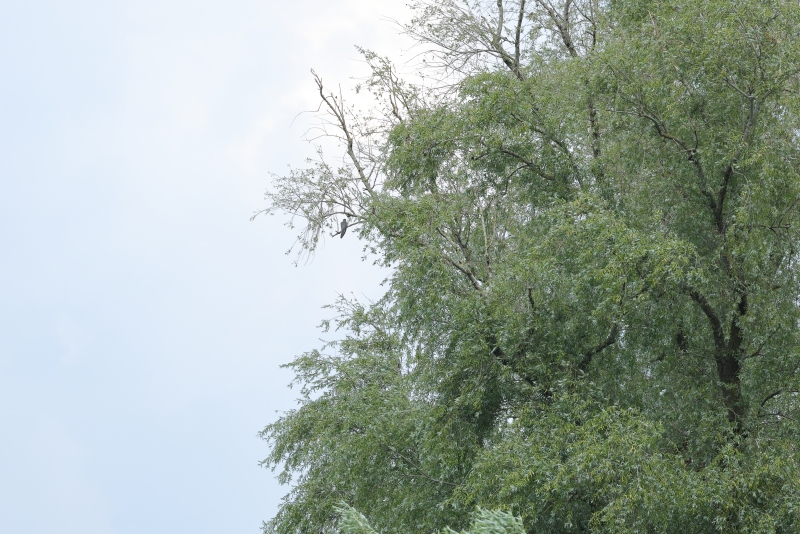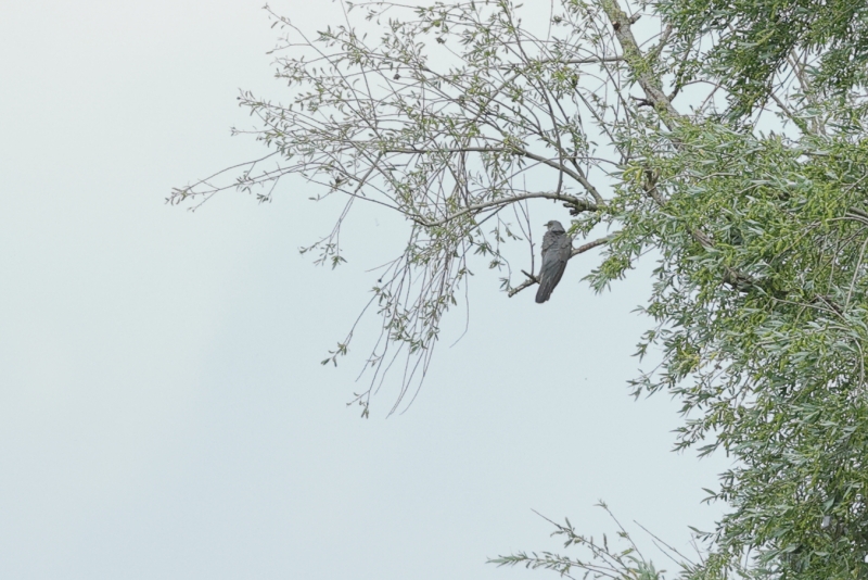 Vanaf de plek waar ik stond was ook de roep van een Koekoek goed te horen. Ik kon wel horen dat hij wat verder weg zat, maar zo ver als waar ik hem (haar?) uiteindelijk vond… Hij zat op een kale tak in een immense boom, eigenlijk te ver om er een redelijk plaatje van te maken, wat ik natuurlijk wel deed.