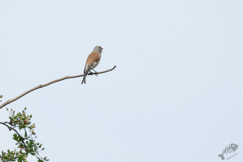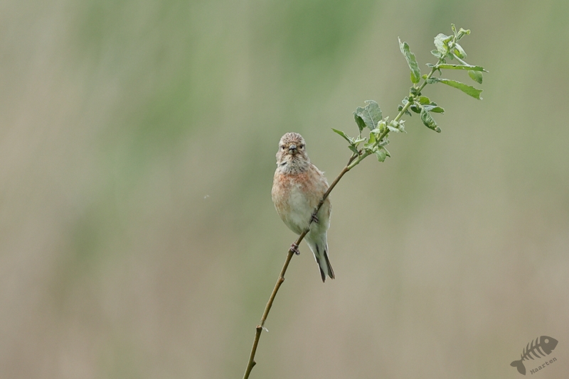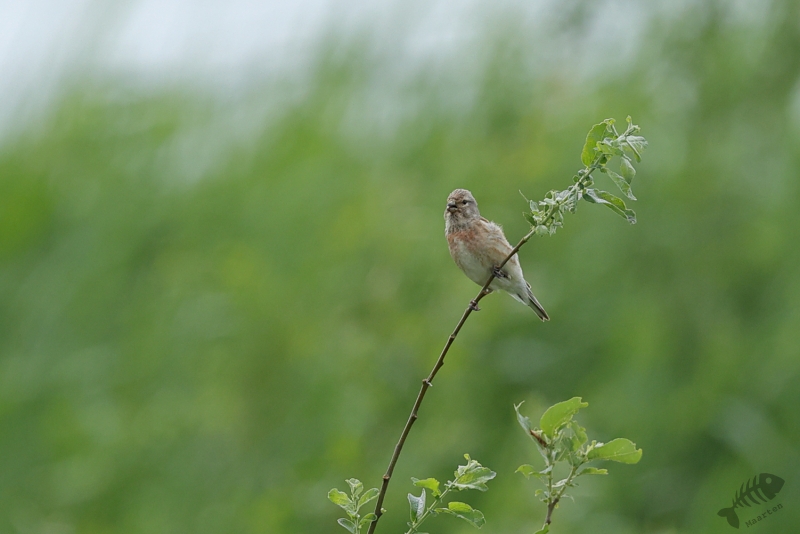 3 Dagen na mijn vorige bezoek aan de Nevengeul ging onze dochter weer paardrijden en kon ik dus weer een uurtje in dit leuke gebied vertoeven. Het was weer wat bewolkt, ideaal voor het fotograferen, maar de vogels leken zich er ook niets van aan te trekken. De eerste die ik tegenkwam was weer een (de?) Grasmus. Hij zat lekker te zingen bovenin zijn struik en ook deze keer liet hij het toe dat ik hem fotografeerde. De volgende die ik vast kon leggen was een Kneutje dat ook lekker zat te zingen. Hij zat op het puntje van een kale tak en was daarom ook lekker goed te zien. Bij hem heb ik geprobeerd 2 verschillende foto’s te maken: ééntje met een groene achtergrond en ééntje met een witte, wolk, achtergrond. Het onderwerp blijft hetzelfde, het plaatje bijna ook, maar het beeld is toch heel anders…