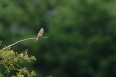 Daarna kwam ik uit bij de plek waar de dijk het water doorkruist. Hier hoorde ik een heel voorzichtige Kleine Karekiet in het riet en zat aan de overkant ook weer een Kneu volop open en bloot te zingen. Snel een paar plaatjes gemaakt voordat ik de focus op een Bosrietzanger legde. Zo had ik toch al best weer wat verschillende soorten én verschillende leuke foto’s kunnen maken.