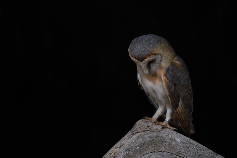 Omdat het uiteindelijk volkomen donker was, moest ik ook het licht gaan bedienen zoals Hans me uitgelegd had. Hij had me op het hart gedrukt het vooral niet té fel te zetten, dus moest ik voor een beetje redelijk sluitertijden m’n iso enorm opschroeven. Gelukkig bleek m’n nieuwe camera daar best aardig mee om te kunnen gaan, maar wat misschien nog wel gunstiger was, was het gebrek aan geluid. Ik had het elektronische geluid uitgezet, zodat de camera helemaal stil was tijdens het maken van foto’s en de Uil daardoor niet afgeleid of verstoord kon worden.