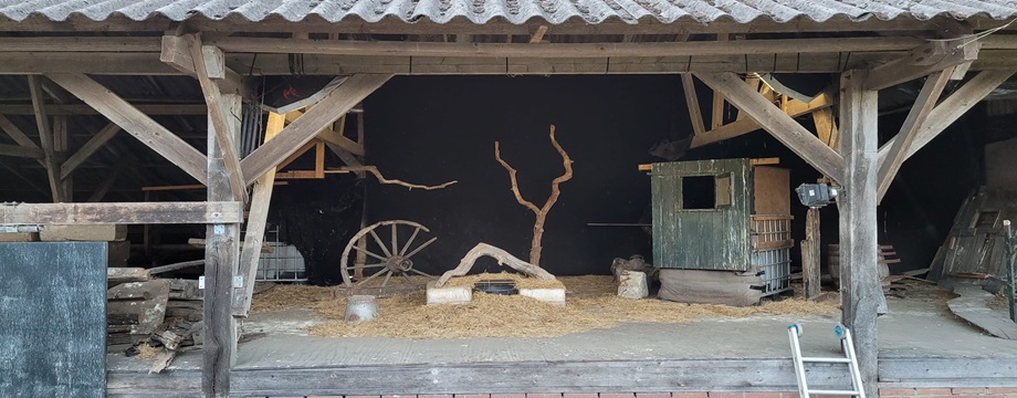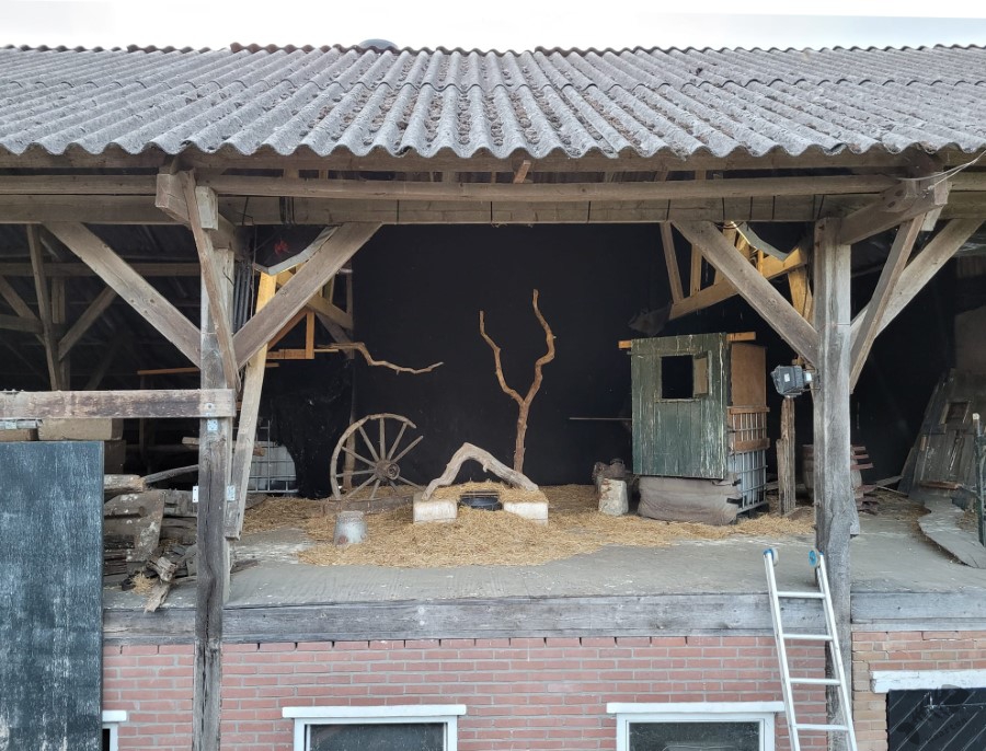 12 Juni was het dus zover en ben ik om half 8 van huis vertrokken omdat ik om half 9 ’s avonds op locatie moest zijn. Het was prachtig weer, het laatste half uur liep de weg door het adembenemende platteland van de Achterhoek en daarmee was het begin van de avond in ieder geval al helemaal geslaagd. Iets voor half 9 kwam ik bij de boerderij aan en kwam Hans me hartelijk begroeten. Hij vertelde waar ik de auto het best neer kon zetten om na afloop het makkelijkst in het donker weg te komen. Daarna liet hij me zien waar de stekkers voor de lampen zaten om de lichten van de stroom te kunnen halen en daarna zijn we naar de daadwerkelijke hut gegaan.