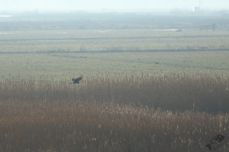 Bij de boerderij niet ver van het parkeerplaatsje moest ik natuurlijk nog wel even kijken of de Steenuil er zat. Dat leek niet het geval en moest ik genoegen nemen met een Huismus en een voorbij vliegende Aalscholver waar het eigenlijk al te donker voor was. Maar toch zeer voldaan heb ik het laatste stukje naar de auto afgelegd en ben ik weer naar huis gereden. Ook vandaag bleek maar weer dat het altijd de moeite waard is naar de Arkemheense Polder te gaan. De vogels en het licht gedragen zich altijd weer anders en soms heb je het geluk zelfs een nieuwe soort te zien! Absoluut: het was weer enorm geslaagd!