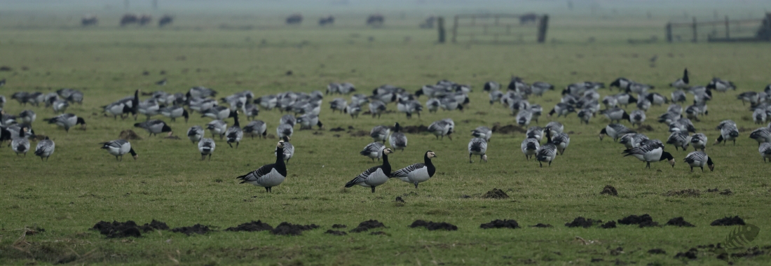 Onderweg ben ik alleen nog even gestopt voor een grote groep Brandganzen en natuurlijk aan deze kant van de Polder aan het begin van de Zeedijk om daar het grote water af te zoeken naar Nonnetjes, Pijlstaarten of ander moois. Er zwom van alles moois, maar over het algemeen heel ver weg en met de Brilduiker en het Nonnetje die ik al heel mooi had gezien, heb ik niet verder gezocht zodat ik voldoende tijd zou hebben de dijk vanaf het parkeerplaatsje bij de boerderij af te lopen.