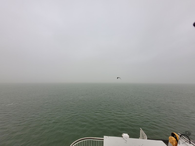 Vanaf de Slufter ben ik rechtstreeks naar de veerpont gereden, maar de timing bleek nu wat minder gunstig. Ik was ongeveer een kwartier te laat en moest ruim een half uur wachten. Maar ook aan dat wachten kwam een einde en om 17uur stond ik op het veer met een kaasbroodje en een kop koffie. Langzaam voeren we weg van Texel met zijn bijzondere bezoeker en doemde Den Helder door de regen alweer op. De terugreis ging behoorlijk vlot en zo was ik rond 20uur weer thuis en had ik er 12 uur opzitten om 1 vogel te gaan bekijken. En het was het iedere minuut waard geweest! Wat een prachtige vogel in een prachtige omgeving! En wat een leuke mensen heb ik ontmoet met allemaal dezelfde passie en beetje gekte om van ver naar een vogel te komen kijken (en sommigen dus van heel ver…).